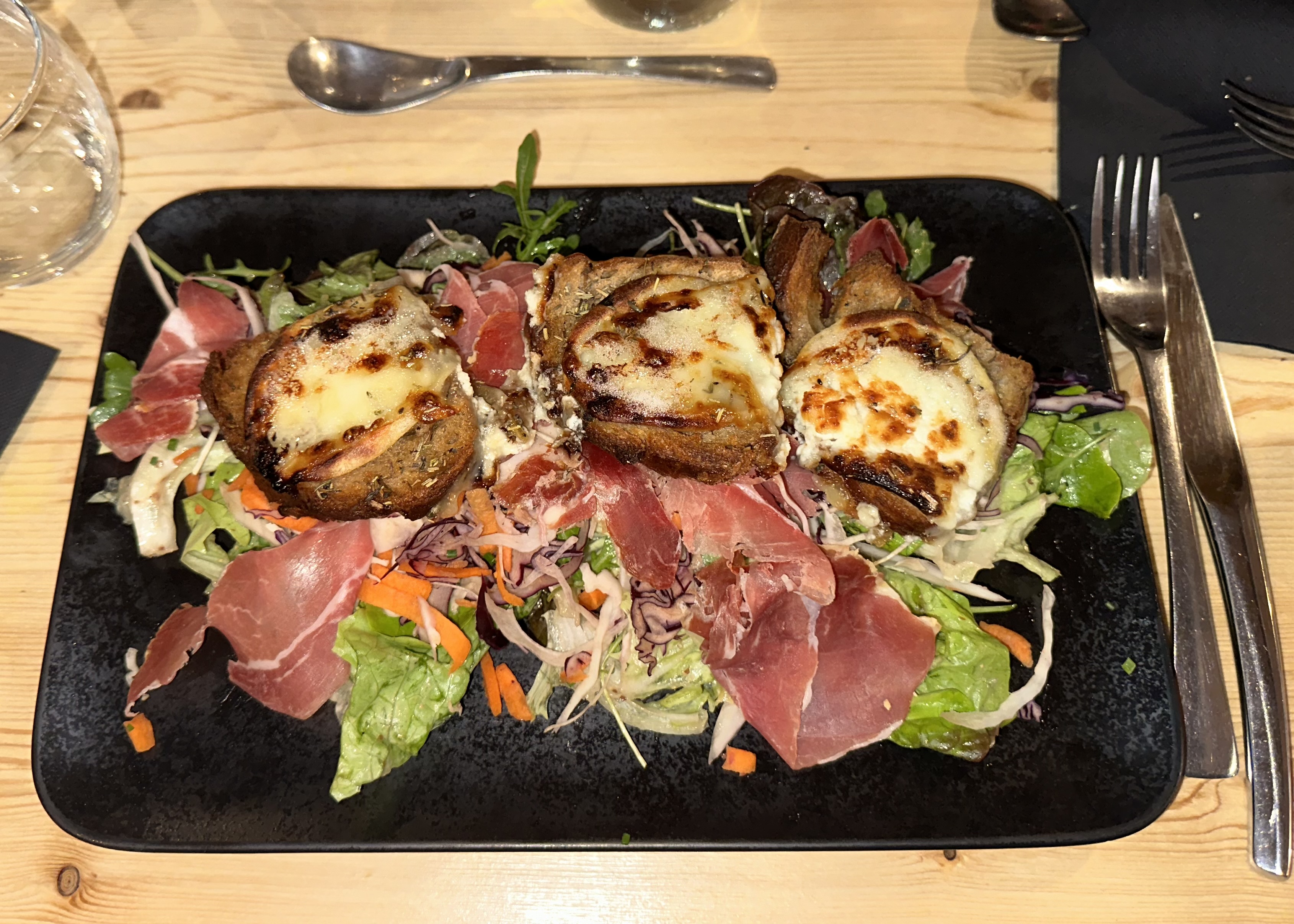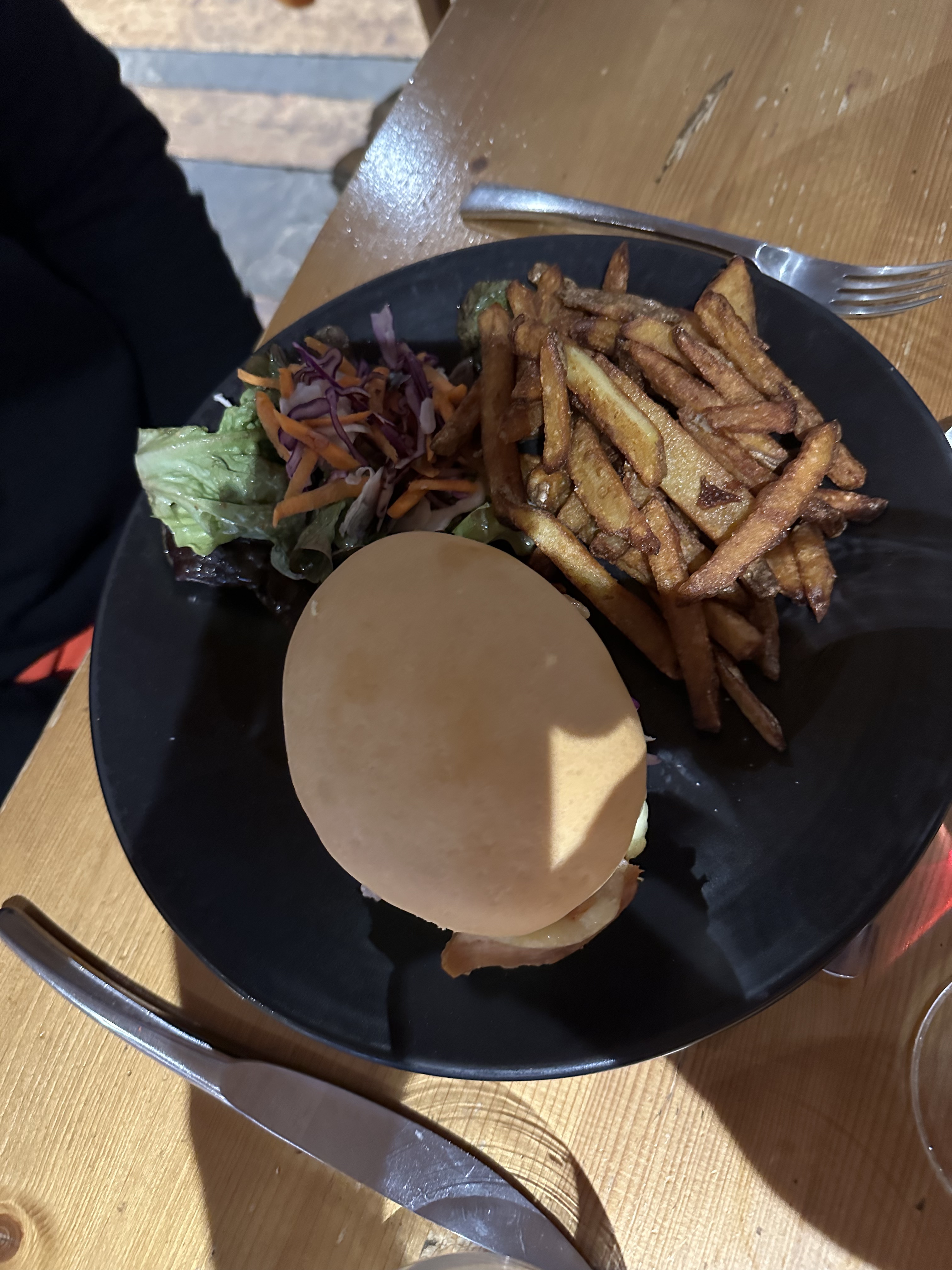 Plats savoyards ou non, on trouve de tout en bonne quantité. Avec des plats seul ou à partager de bonne qualité, je recommande leurs escargots d’apéritif, enrobés dans une pâte feuilleté au lieu de la coque. La croziflette était super bonne. Le burger était bon et a pu être adapté pour quelqu’un ayant du mal avec le fromage. Et le tiramisu était super.