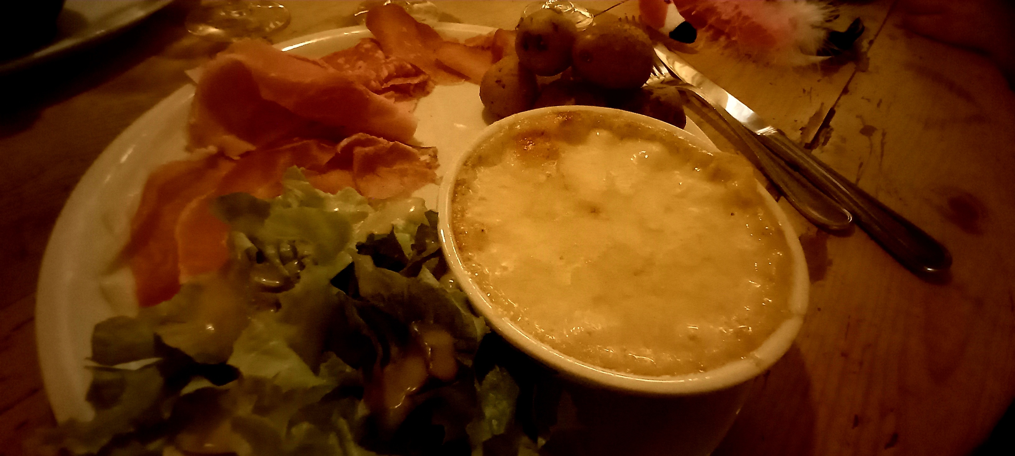 Découverte aujourd'hui d'une auberge typique savoyarde, la Ferme des Alpes, à quelques kms de Thonon. Le décor est bluffant d'authenticité, les assiettes excellentes & généreuses et le service extrêmement sympathique... Une magnifique adresse...