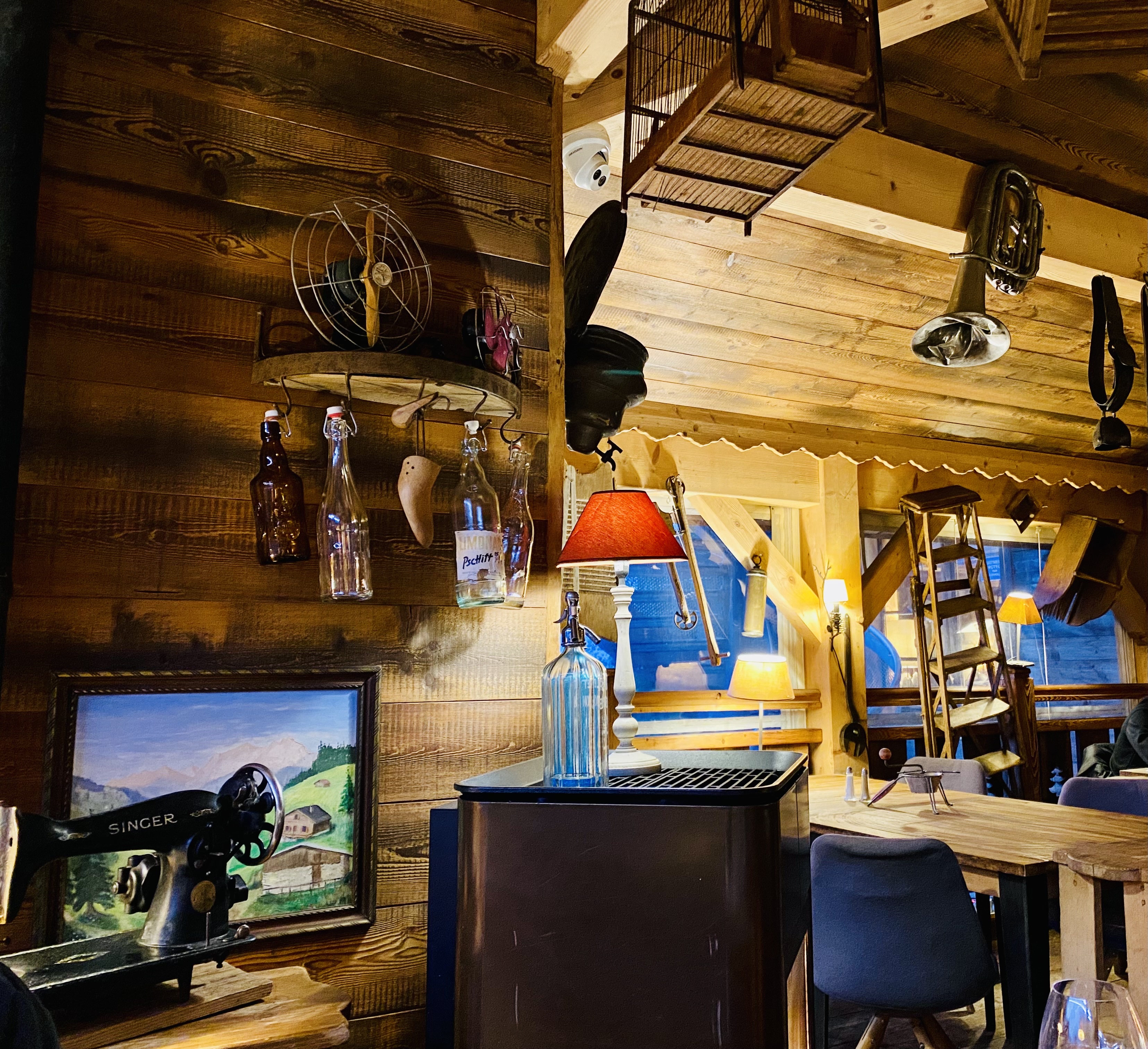 Un superbe décor atypique que nous avons trouvé génial que du matériel ancien en décoration. Mais les boissons et menus n'ont rien d'ancien et sont très bons. Spécialités savoyardes, pierrade, quelques poissons. Patron et personnel très accueillants Un dynamisme à toute épreuve pour Nathan qui se démène beaucoup.