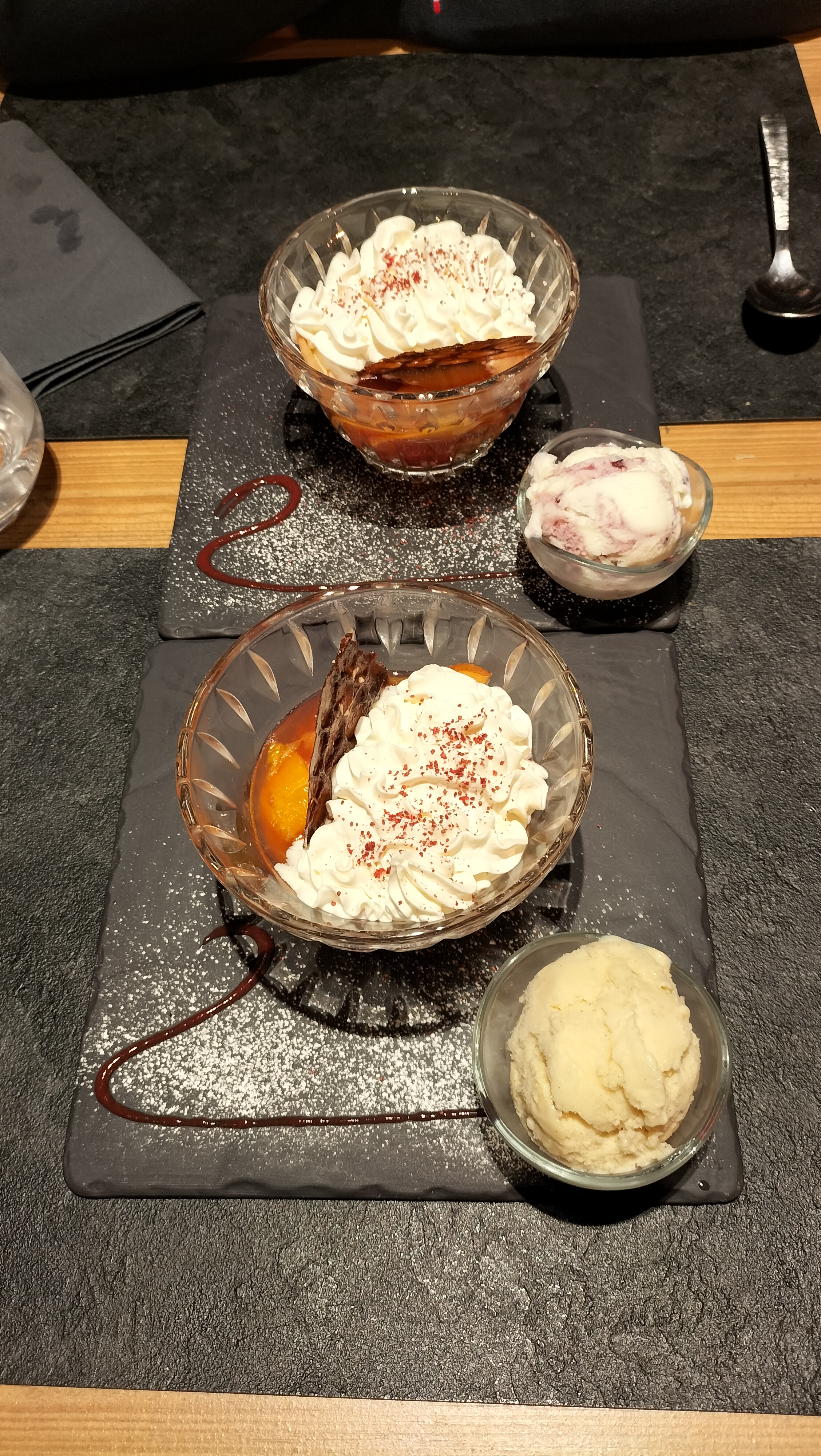 Incroyable, cadre magique, une fondue qui réserve des surprises et qui est divinement bonne La glace à la violette est à tomber par terre Des produits de qualité et délicieux nous sommes d'ailleurs répartis avec du jambon et du fromage !! Nous avons passés un excellent moment Merci beaucoup