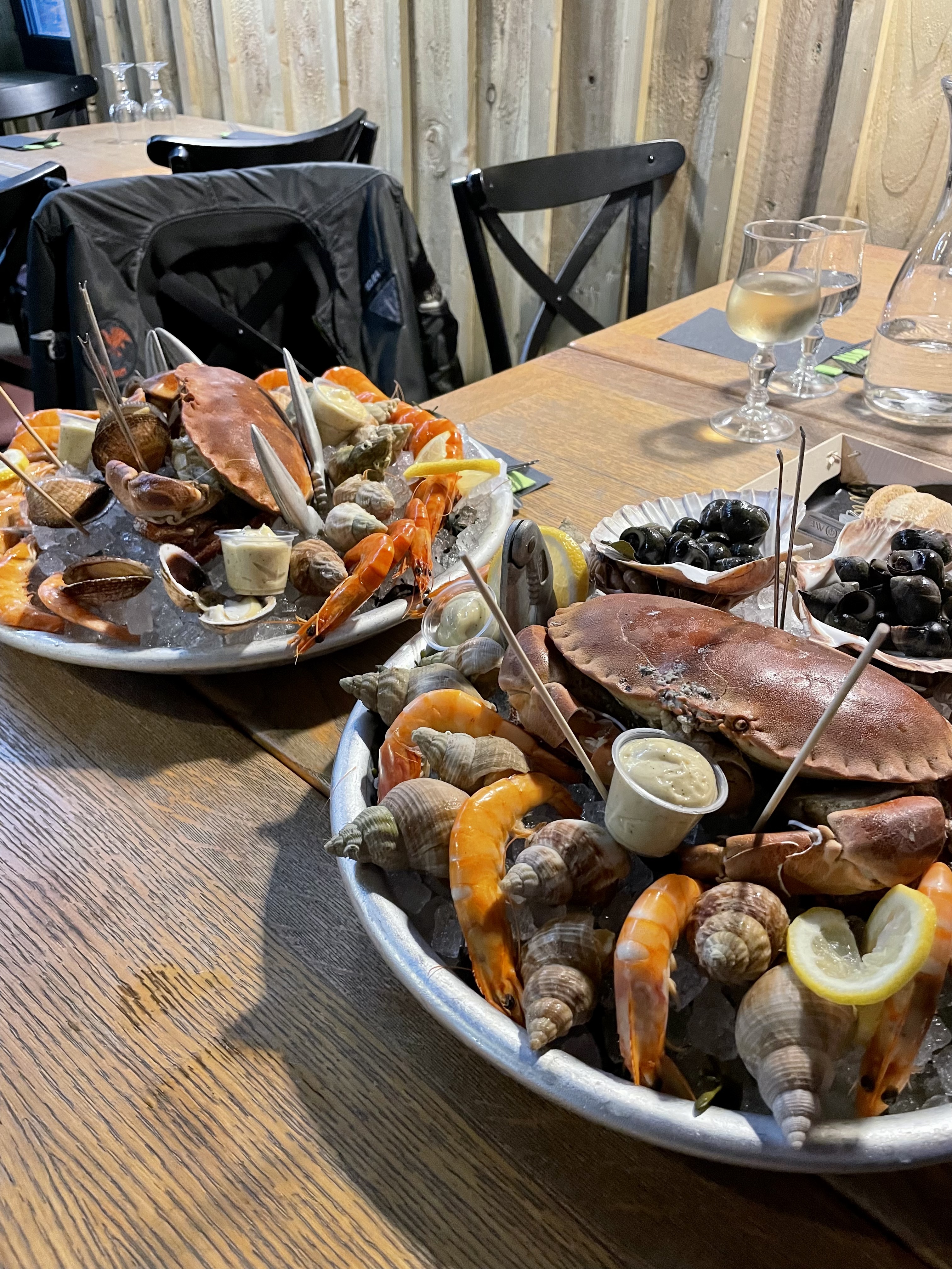 Un concept cantine et bonne franquette. On choisit la composition de son plateau de fruits de mer, on dresse soi-même sa table, on va chercher sa boisson, on a un bipeur qui nous appelle lorsque les plats sont prêts. Un décor tout simple. Bien se couvrir. Il fait parfois un peu frais à l intérieur. L’accueil est sympathique. On y mange très bien. Large variété de fruits de mer. Possible d’avoir des plats chauds également : grillades de poisson, homard, moules.