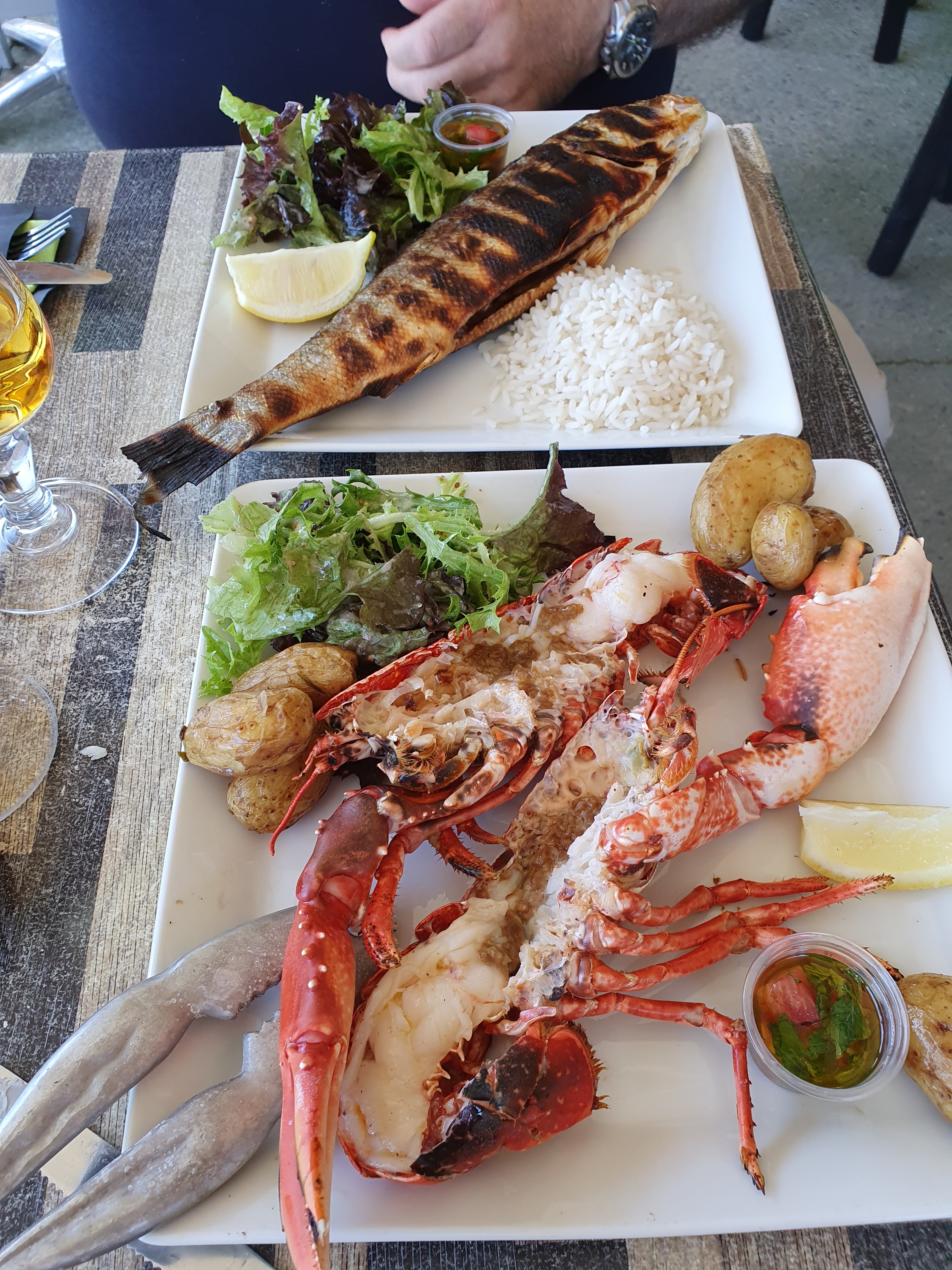 Super etablissement choississez vos plats vos crustaces et tout est pret le temps de deguster un bon verre de vin tres bonne organisation un personnel au top et tres sympa a tester absoluemment