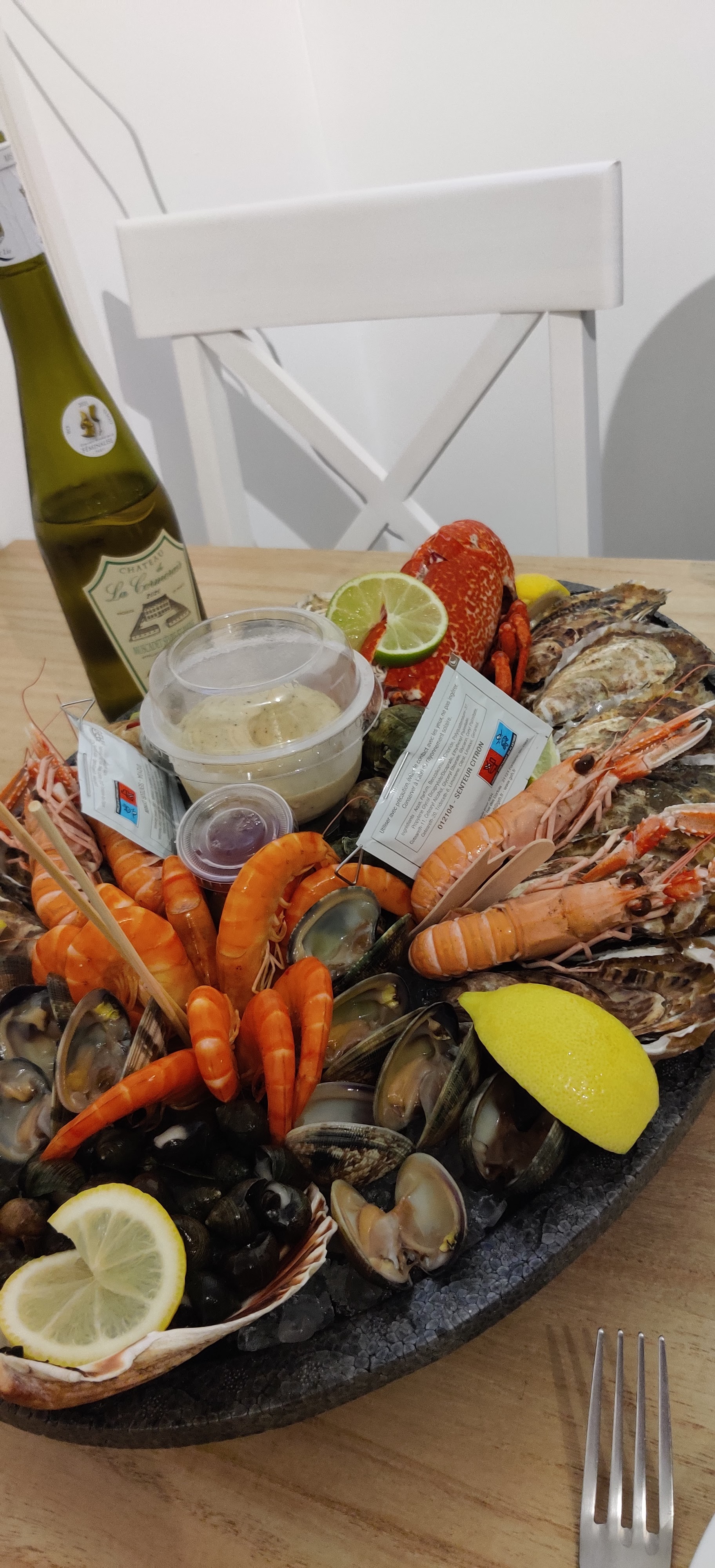Nous avons emporté un plateau de fruits de mer commandé juste 2 h avant. On y croyais pas de trop. On sait régalés, tout était d une fraîcheur irréprochable, je conseille à 100%