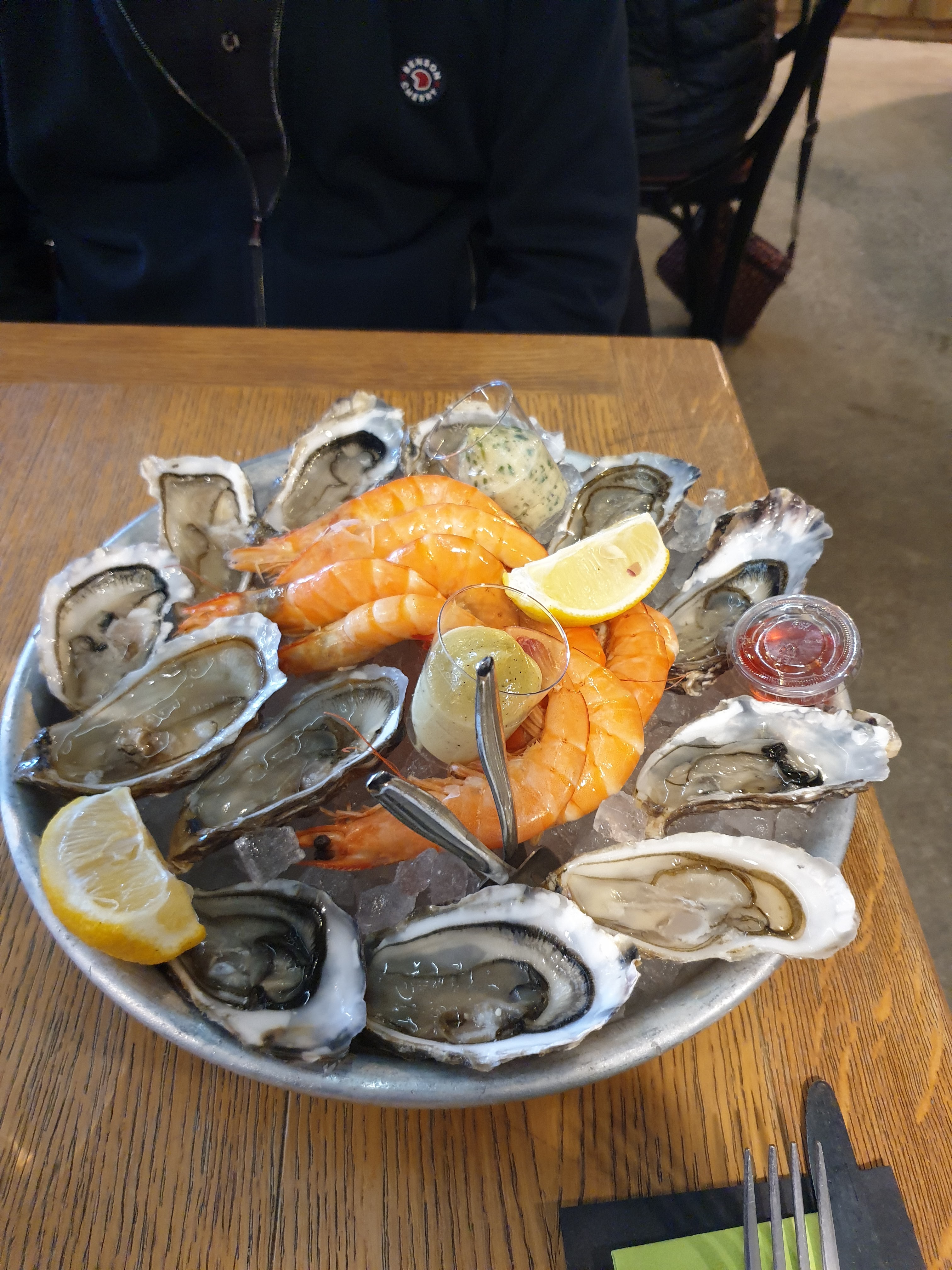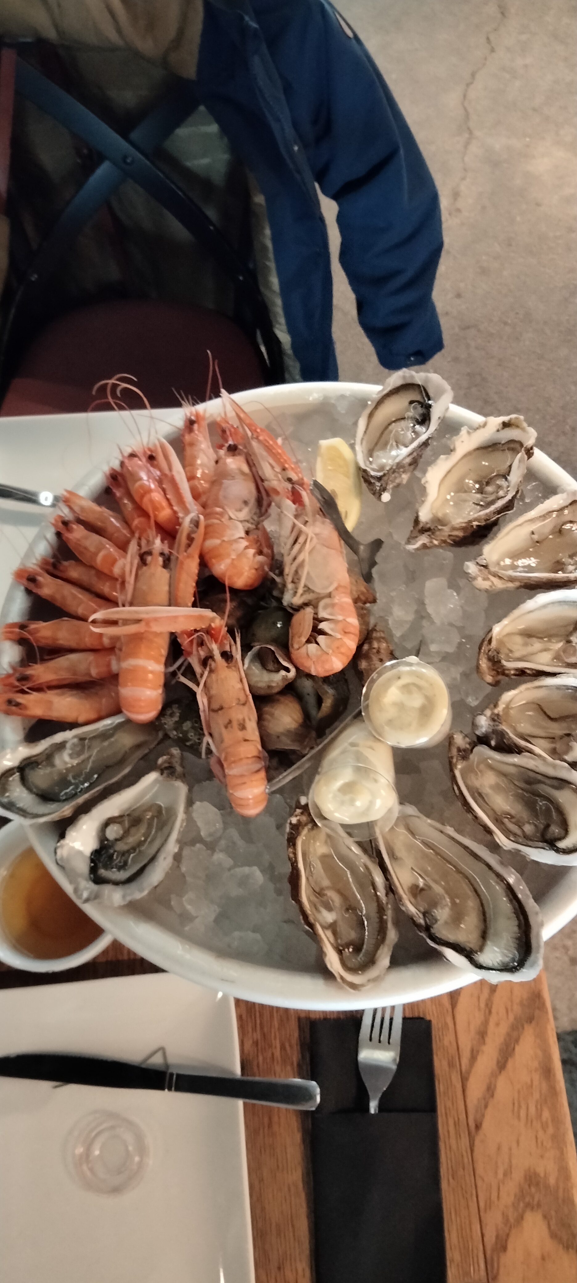 Pour la fraîcheur des huîtres et crustacés, rien à dire. L'idée de composer le plateau nous a séduit mais après ça se gâte toute petite table très proche des voisins. Le biper remis à l'entrée sonne quand le plateau est prêt donc nous allons le chercher. Il prend les 3/4 de la table, nous sommes étonnés de ne pas avoir d'assiette, de pinces et fourchettes à tourteaux, de poubelle, il faut aller les chercher Ah, on ne vous l'a pas expliqué à l'entrée nous dit la serveuse à chaque fois. Eh bien Non. Enfin, nous allons déguster notre plateau, les huîtres et bulots du dessous trempent, la glace s'est transformée en eau et ce n'est pas agréable. Bref habitués ok mais touristes passez votre chemin, une fois que vous avez payé, plus aucune attention GROS PIÈGE À TOURISTES