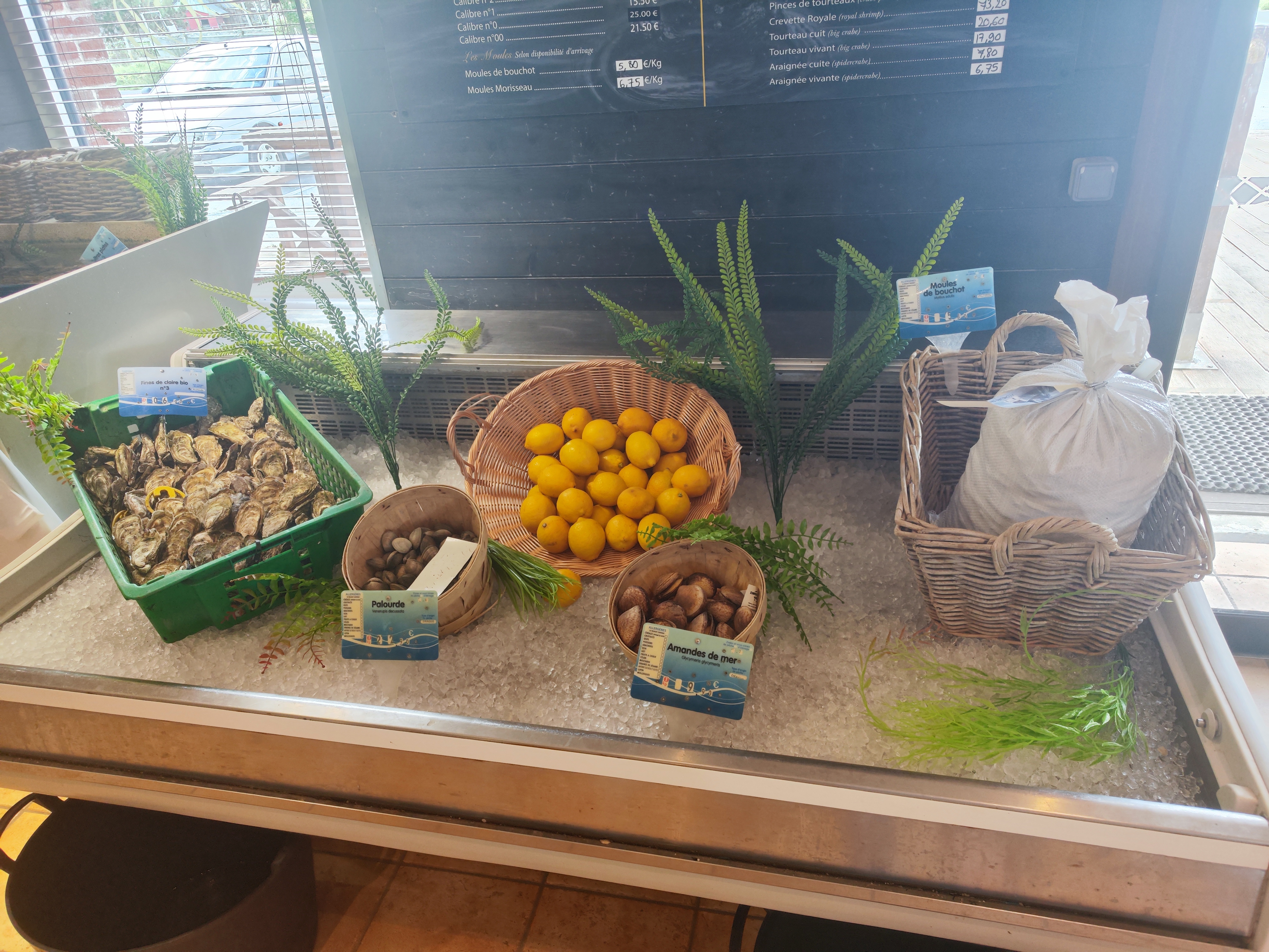 Super self service de crustacés locaux (huitres langoustine homard...) avec accueil chaleureux