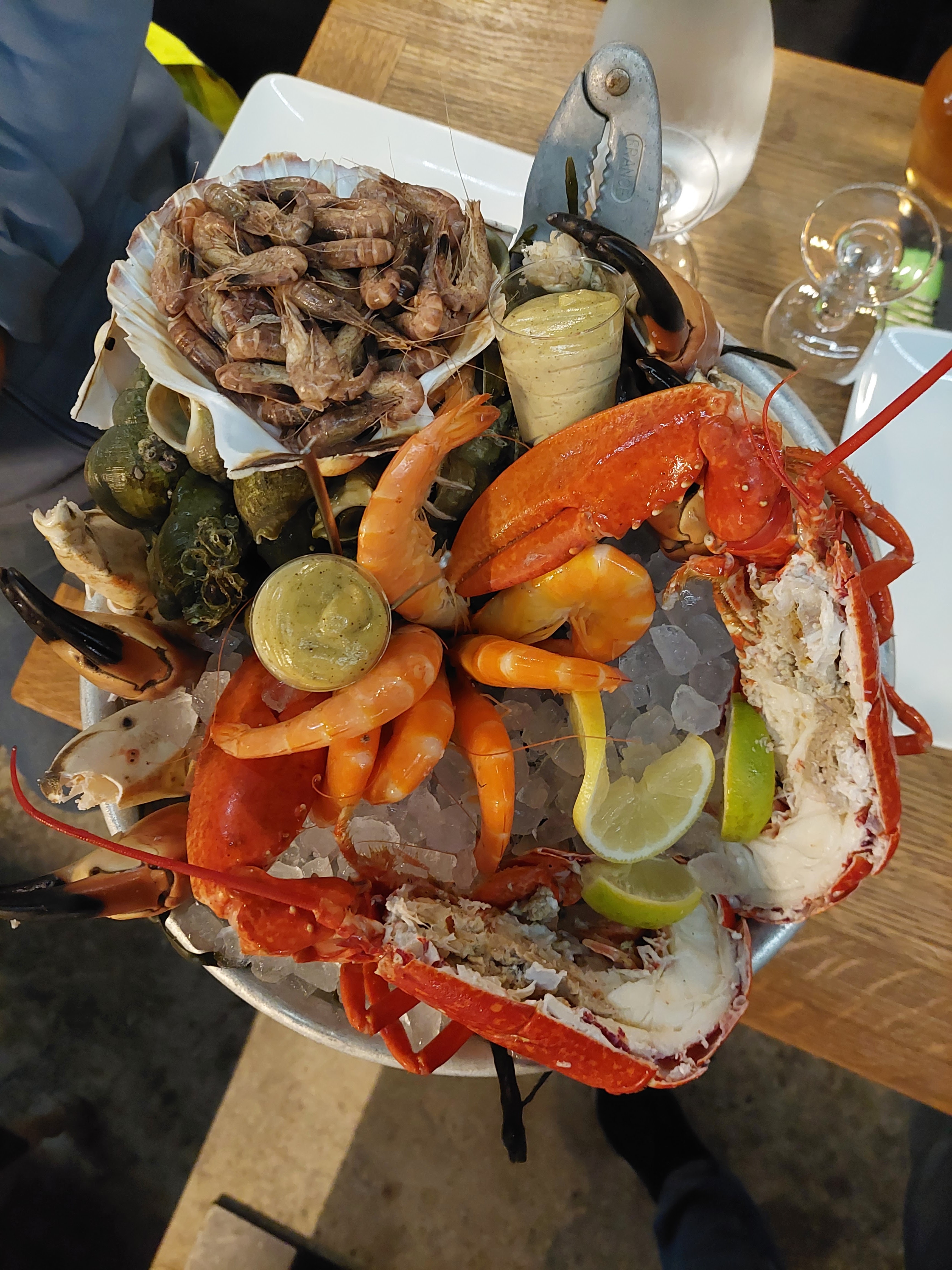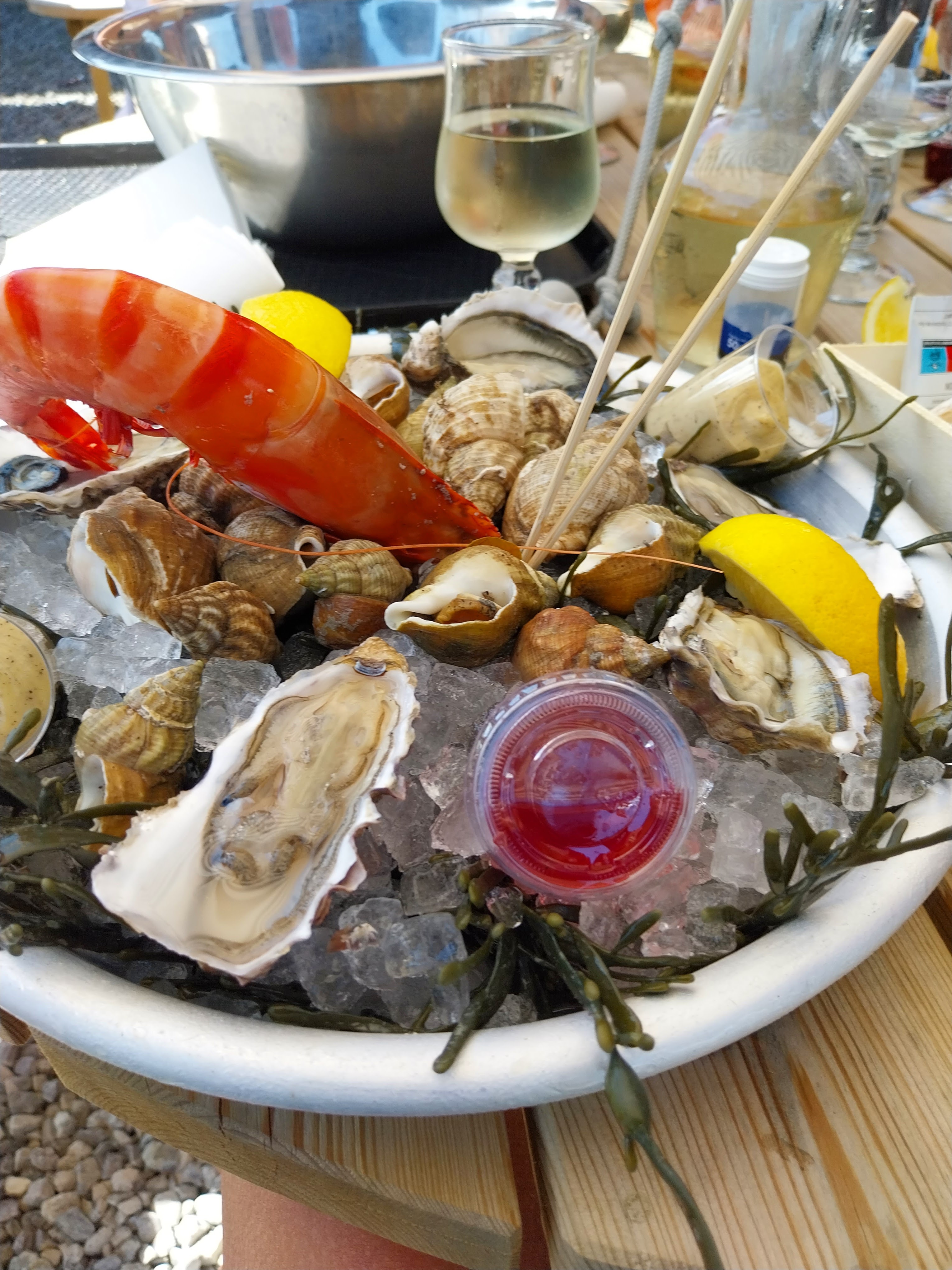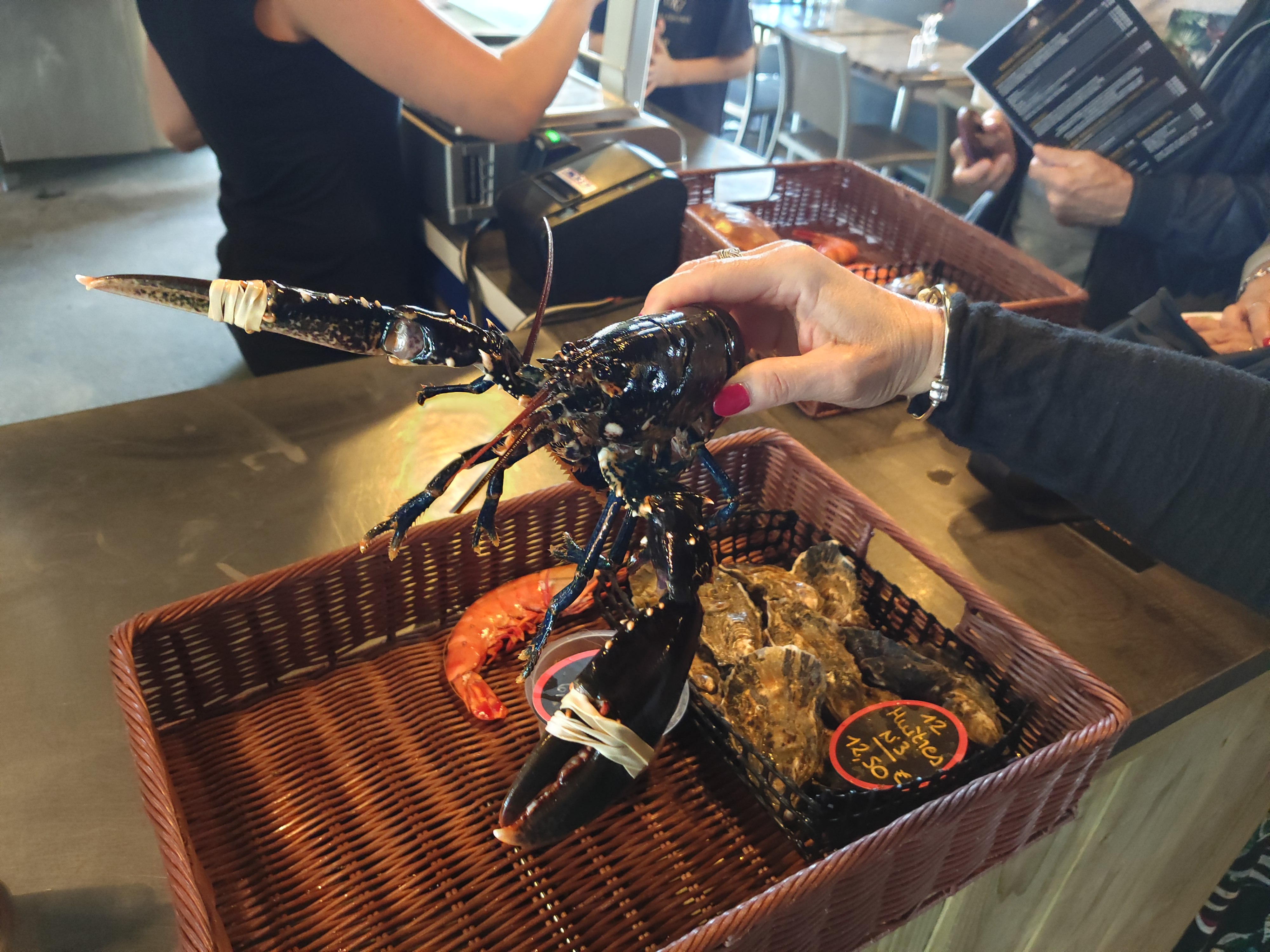 Alors là génial,on ce fait son panier de fruits de mer et l'équipe s'occupe d'ouvrir les huitres, nous on a choisi un homard et on nous la cuit sur place
