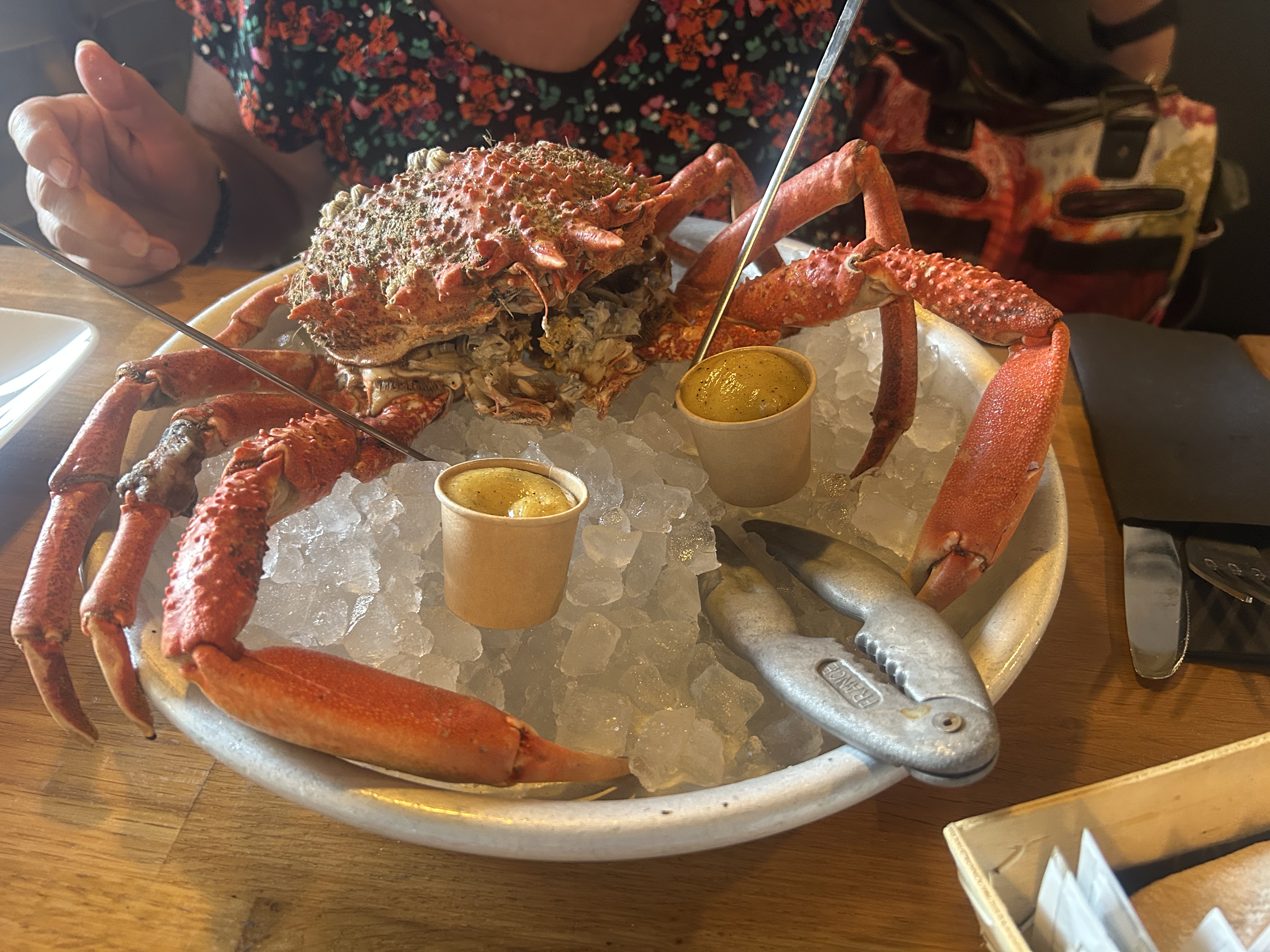 Dommage un personnel très aimable . Très propres. Mais une araignée pas asser cuite de la bouillie les 3/4 un mangeable puis des langoustines certainement glacées elles étaient difficile à éplucher très déçu Nous avons l'habitude de faire des dégustations de fruits mer du pays nous sommes Le commentaire pour faire mieux uniquement Bon courage à eux