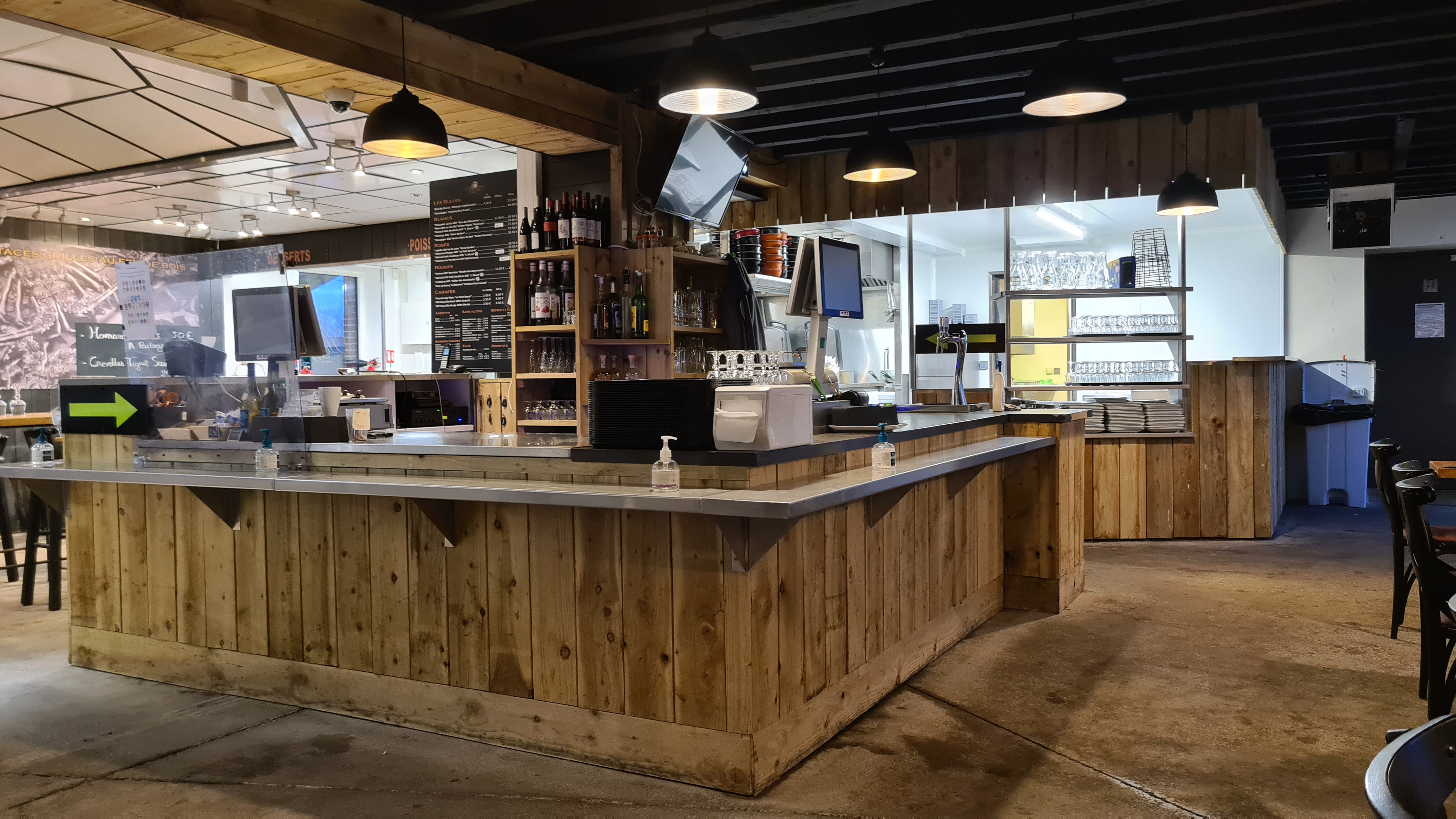 Concept super sympa. Par contre personnel pas assez nombreux. Plus d une heure d attente pour un plateau de fruits de mer. Ensuite plus de 30 minutes d attente pour une entrecote qui arrive crue.!! Demande 2 fois à la refaire cuire mais arrive toujours non saisie la 3ème fois. Pas de dessert et une audition de 136 euros Sans dessert. Il faut pleurer pour avoir bout de pain.