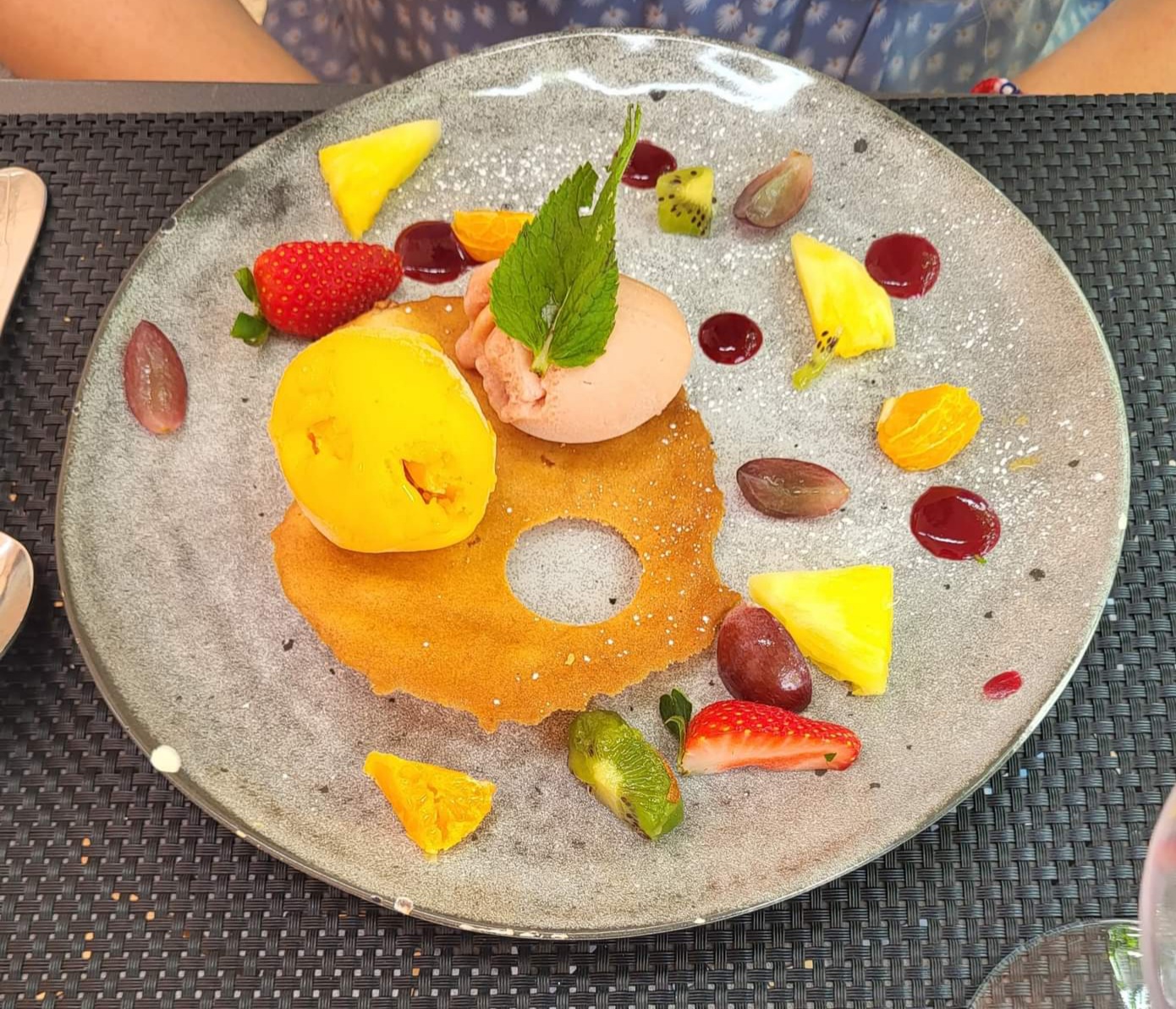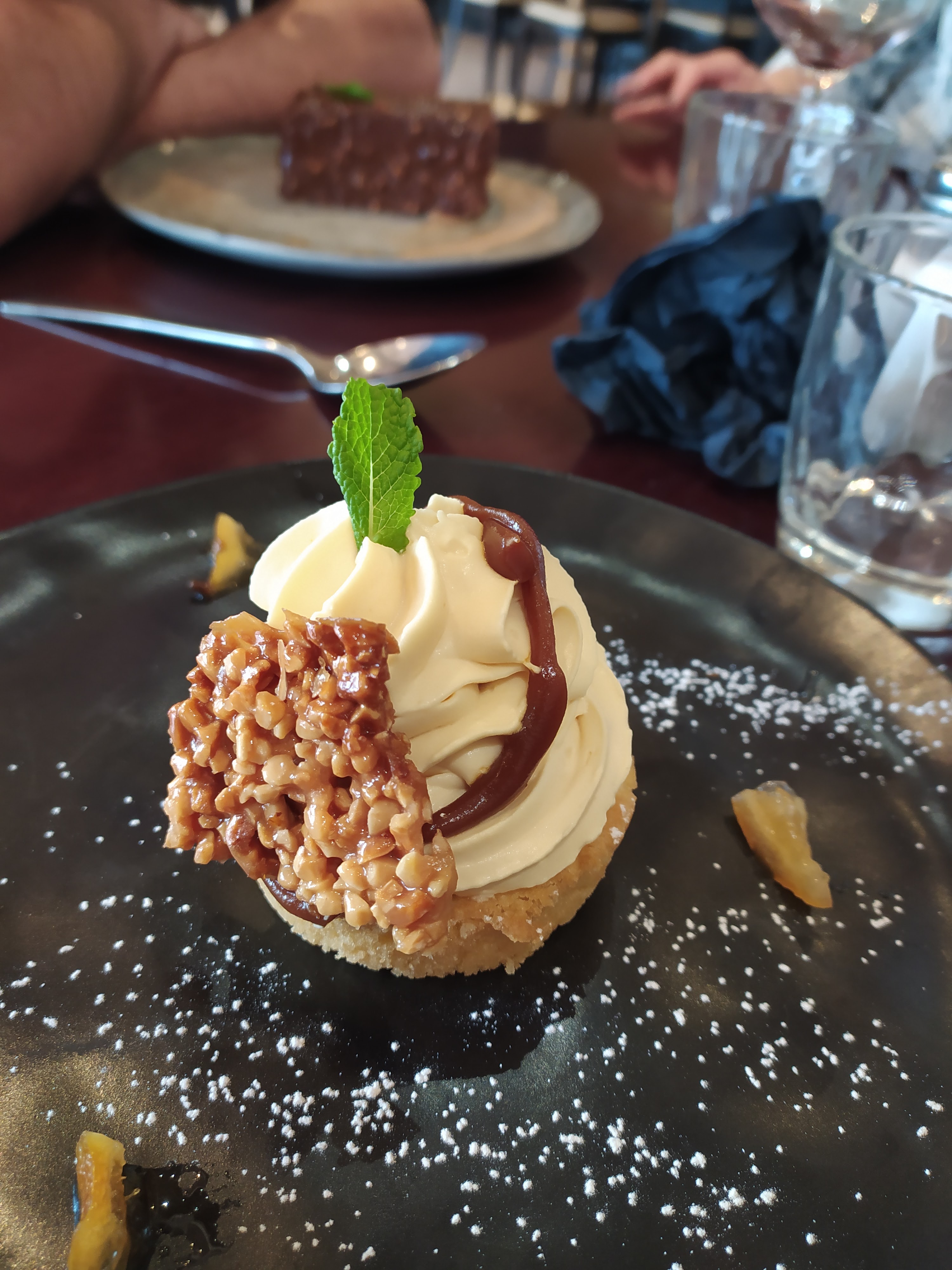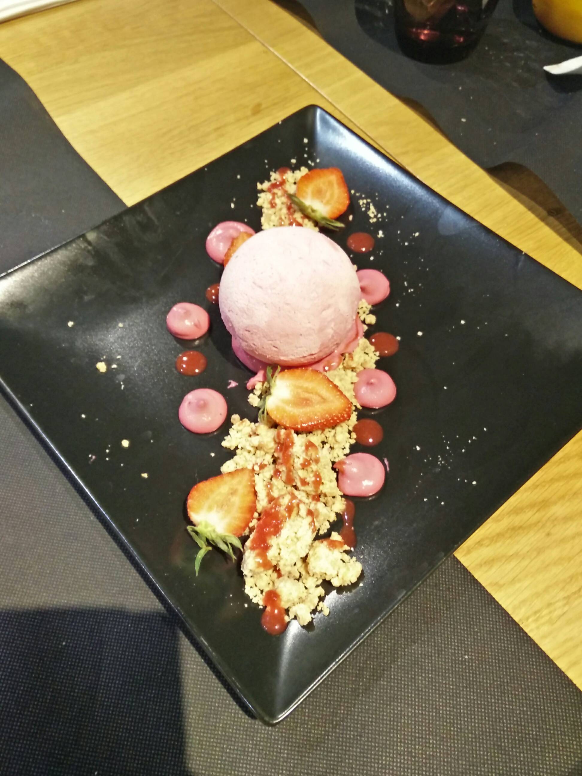 Déjeuné en terrasse assez déplaisant car il y avait beaucoup de mouches ce qui était très désagréables... Les plats étaient bons cependant on ne m'a pas servi le bon... Cela a été remplacé mais cela est un peu décevant. On demande de l'eau qui est apporté que très tard suite à une relance. Désert très décevant, on vous annonce un crumble citron vert/caramel beurre salé et glace vanille, et on vous apporte une assiette avec des morceaux de crumble (uniquement la partie croustillante) par dessus une boule de glace et le citron vert et le caramel se trouvent....en décoration sur le côté de l'assiette.... Je trouve très décevant pour le prix.