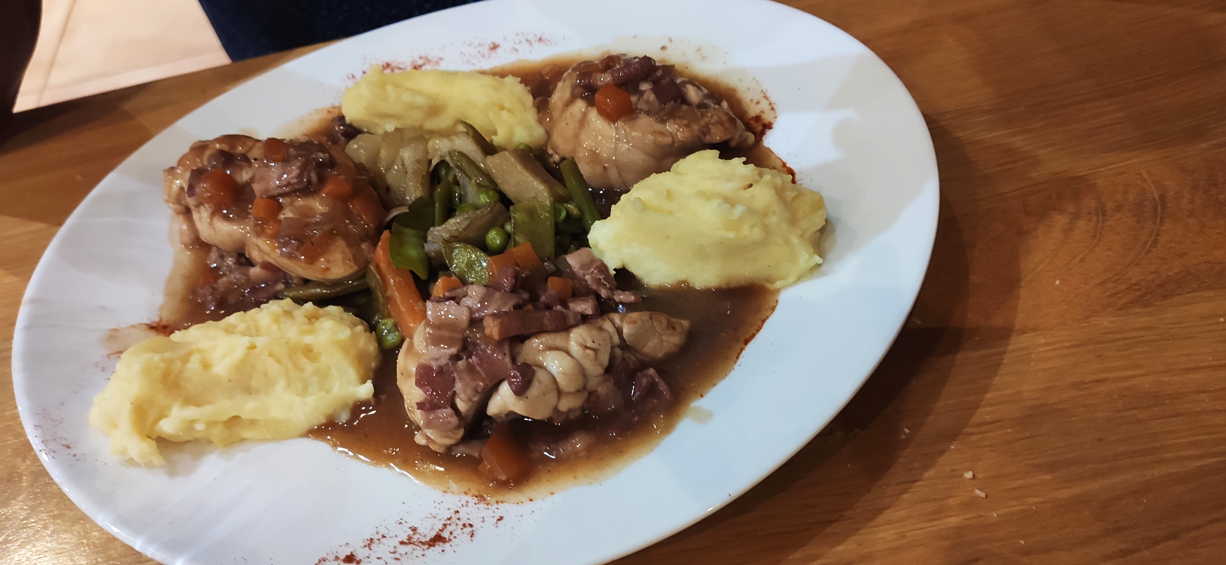 Entrée froide, serveuse pas souriante quel dommage, sinon le plat de résistance très bon sauf la cuisse de poulet très sèche