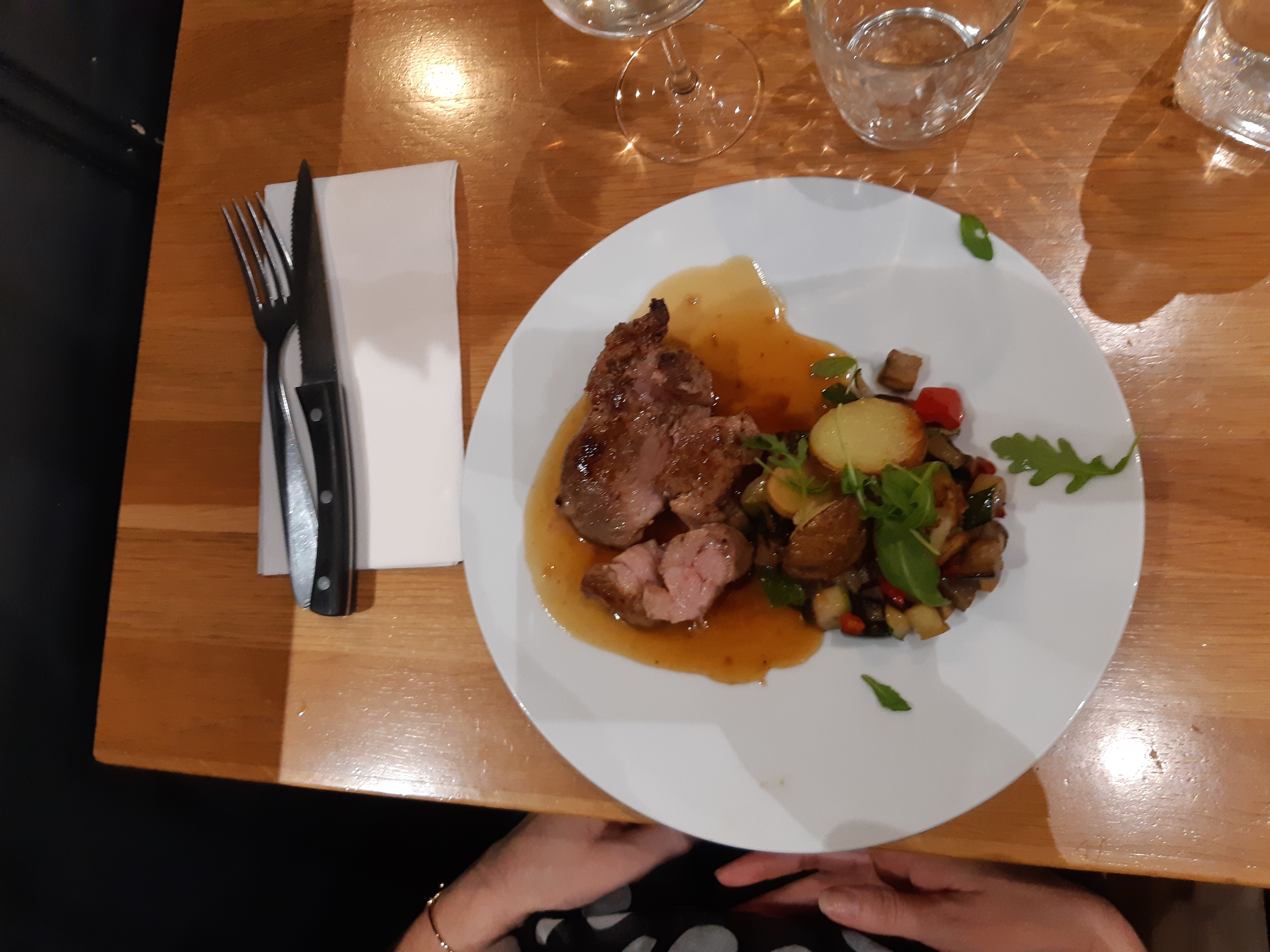 Endroit décoré en toute simplicité et légèreté.On s’y sent bien .Le personnel y est courtois et s’occupe bien des convives.Le plat d’agneau avec ses pommes de terre un régal et une cuisson parfaite .Un regret de ne pas avoir eu un temps pour déjeuner en terrasse. Je recommande ce restaurant sans hésitation.