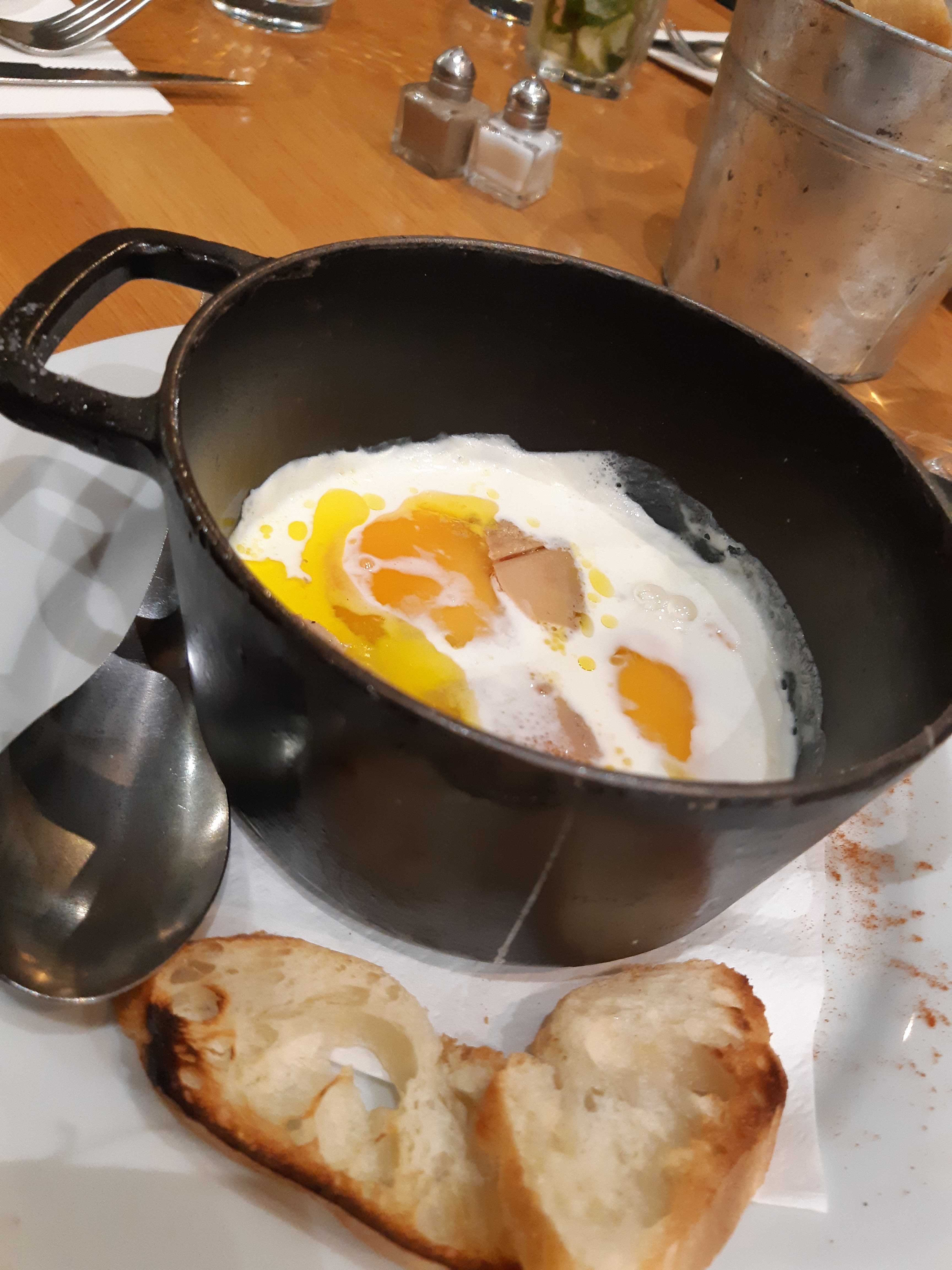 Un repas en demi teinte pour une addition plutôt généreuse. Une très bonne entrée pour ma part (les œufs cocotte) mais mon conjoint a regretté le manque de saumon dans son entrée. Pour le plat, c'était un peu la catastrophe, une viande bien trop cuite et découpée en petits morceaux... On nous a refait cuire la viande une seconde fois qui était parfaite mais la viande était nerveuse et peu goûteuse.