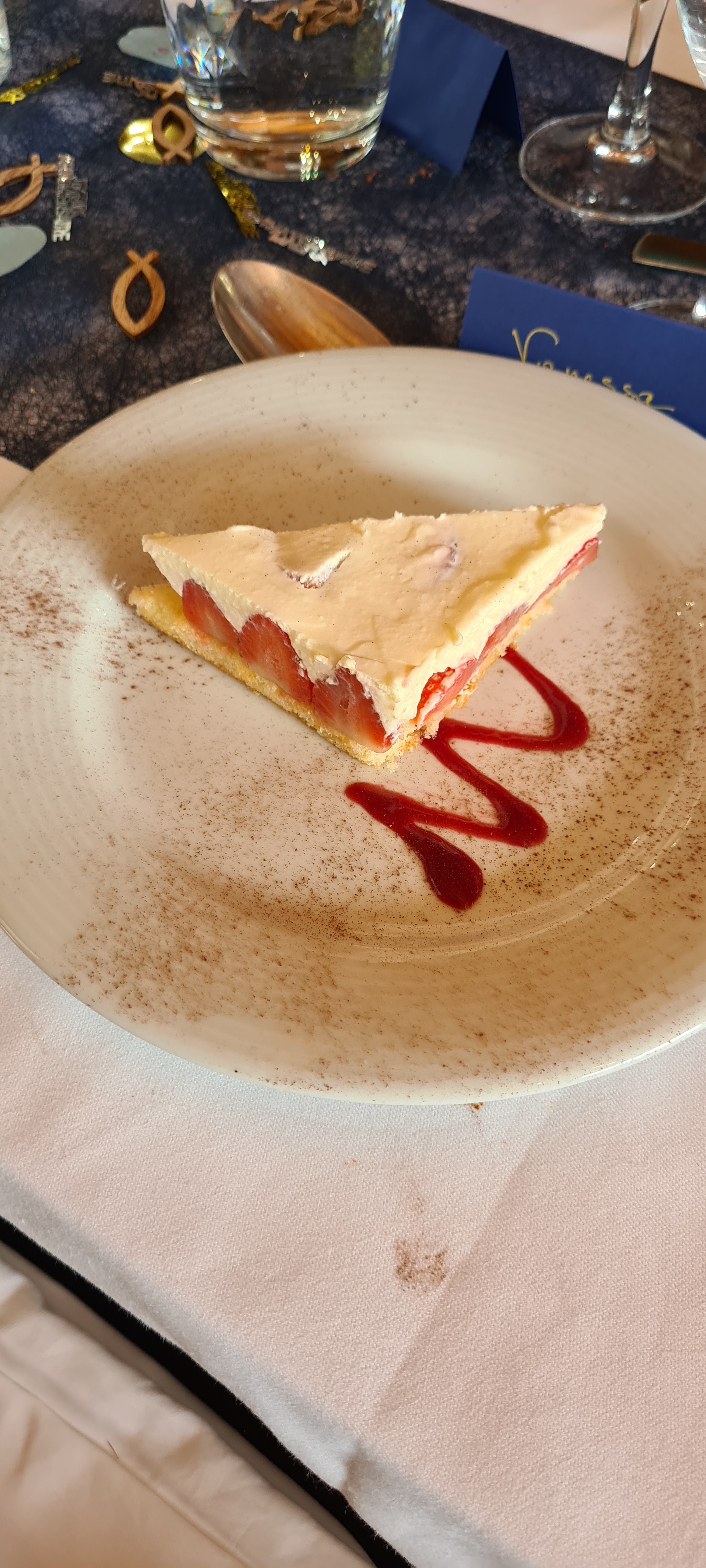 accueil sympathique endroit qui est très jolie après l'entrée était très bonne mais quand le plat est arrivé quel déception, une dégustation autour du canard , le bout de magret manqué de cuisson et alors il y avait un parmentier de canard mais je n'ai pas senti le canard car il n'y avait qu'à peine une noisette (et encore c'est plus gros une noisette je pense) quel dommage. puis le dessert assez déçu aussi la glace était trop compact on ne sent pas la meringue et Mr le chef éviter de mettre des fraise fraîche lorsque ce n'est pas la saison car elles étaient blanche et oui blanche. le lieu donne très envie mais assez déçu.