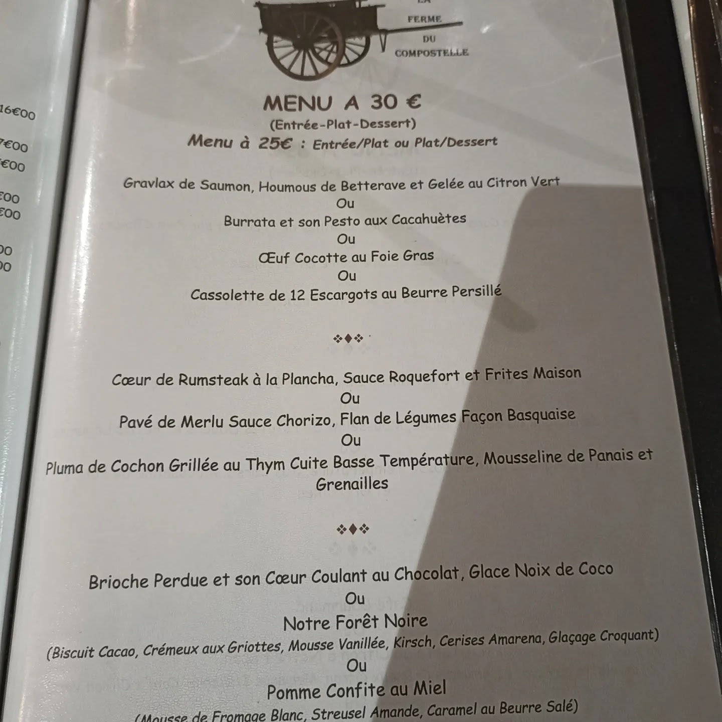Soirée anniversaire de notre fille de 8 ans. Le cadre de la ferme est somptueux, le repas ( menu à 36 €) est délicieux et copieux et le menu enfant digne d'un menu adulte. Prix très raisonnable : 3 apéritifs dont un jus de fruits / 2 menu adulte + 1 enfant / vin au verre / Thé et Café... 109 euros. Service dde qualité et sympathique. Un bémol personne pour accompagner les clients à leur départ. Nous reviendrons quand même.