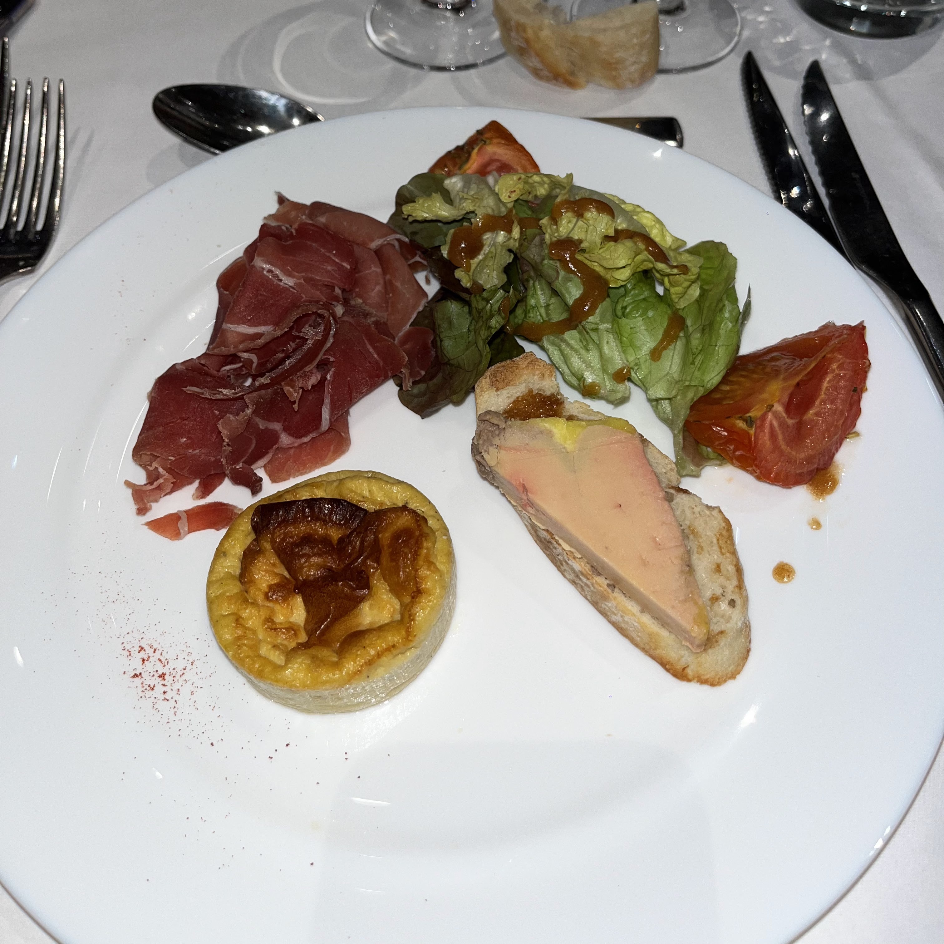 Nous sommes venu lors d’un repas d’entreprise pour fêter noel. Entrée correct. Le foie gras était trop sucré à mon goût et le jambon trop salé. La salade ne payait pas de mine. Dans l’intitulé, le flan est au foie gras mais je n’ai senti que de l’oeuf. Concernant le poisson, il était trop cuit et la sauce bordelaise avec le boeuf était absente. Quant au dessert, le nougat glacé, il était immangeable car j’avais juste un bloc de nougat dur.