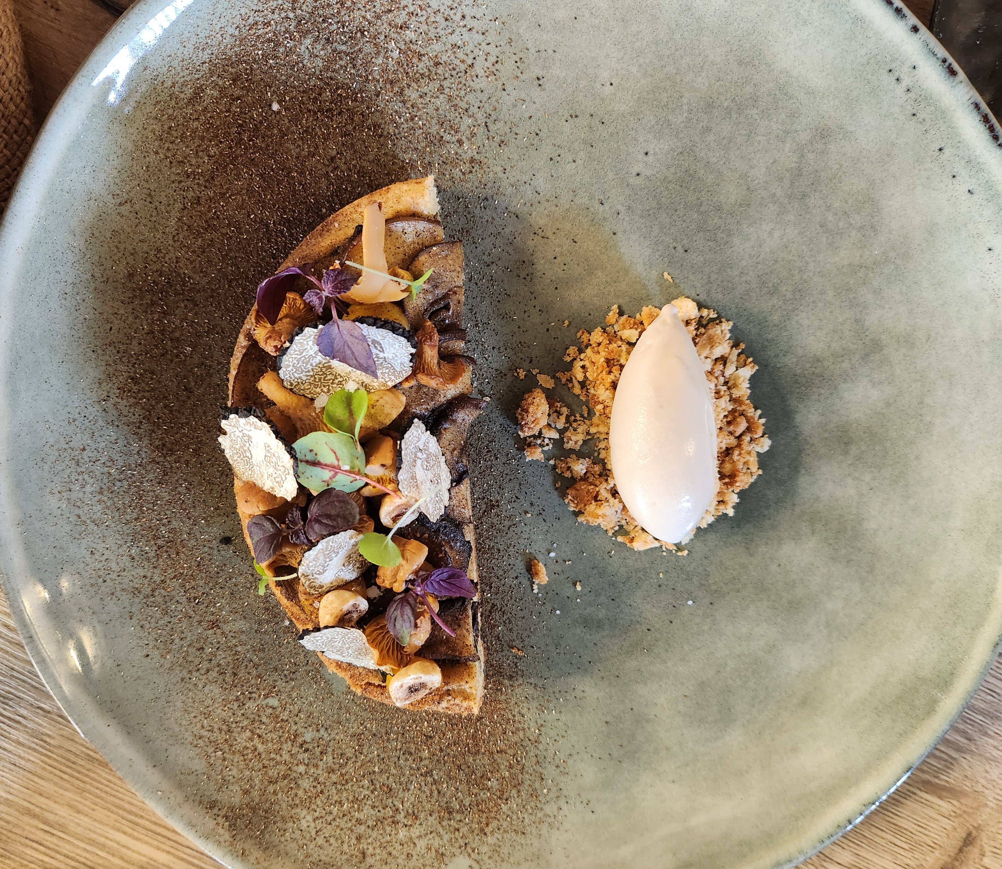 Une merveilleuse surprise. Et je ne veux pas dire par là que nous sommes arrivés ici par hasard en passant. Mais je parle avant tout des impressions sensorielles inattendues que promet chaque plat individuel. Tant de créativité sans expériences gustatives extrêmes, mais tellement excitant à déguster consciemment et un régal pour les yeux, le nez et le palais. Et tout cela dans une ambiance moderne mais confortable avec un service extrêmement sympathique et sans prétention. Je ne suis pas doué avec les noms, mais je me souviens de ceux du jeune chef de cuisine et de sa famille, qui mettent ici en œuvre un concept gastronomique très contemporain et de qualité avec des produits locaux et bientôt avec des ingrédients de leur propre potager d'herbes aromatiques. Avec chien 🐕 accueil convivial. Le plus pour nous, les campeurs : nous avons été autorisés à laisser notre bus (Fiat Ducato) sur le parking de l'hôtel pour la nuit. Nous avons donc pu déguster une bouteille de vin sans aucun problème et y avons ensuite passé une nuit merveilleusement calme. La prochaine fois, notre route vers le sud ne se fera pas par hasard, mais plutôt délibérément !