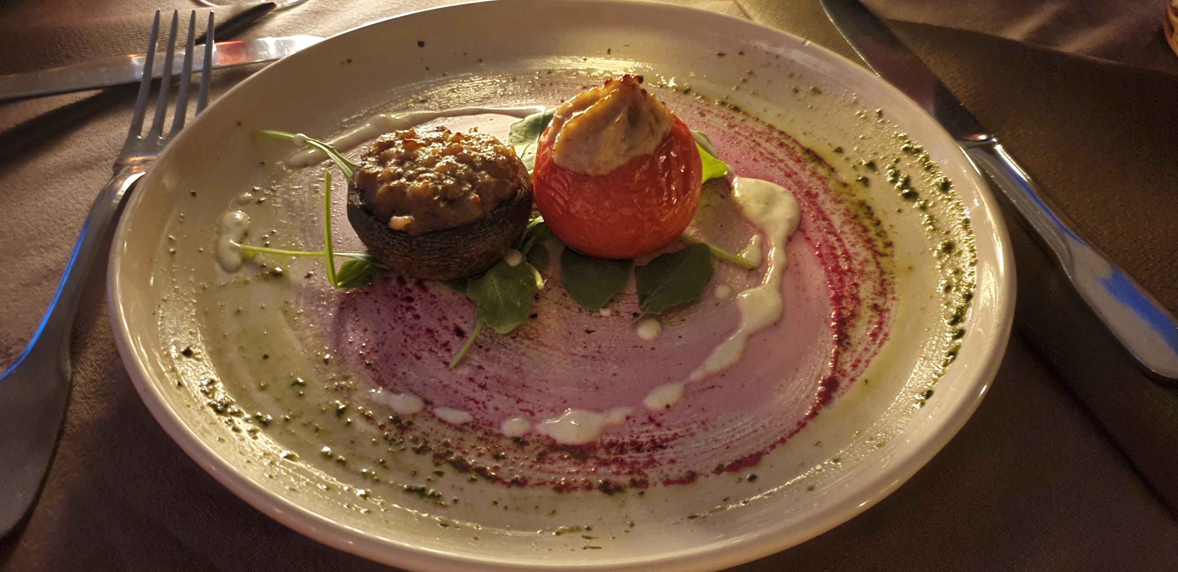 Très déçu :( ... Nous sommes arrivés à 21 heures - l'endroit est magnifique - Mais !!! Nous avons demandé le menu et la serveuse a dit qu'il n'y avait PAS de menu uniquement du poisson ou de la viande. Nous en avons choisi différents - lorsque les plats sont arrivés, ils étaient tous secs et le plat d'accompagnement était froid - même notre chien ne voulait pas le manger. Aucun commentaire sur la facture - ils n'ont pas mentionné le prix ni ce qui est inclus.