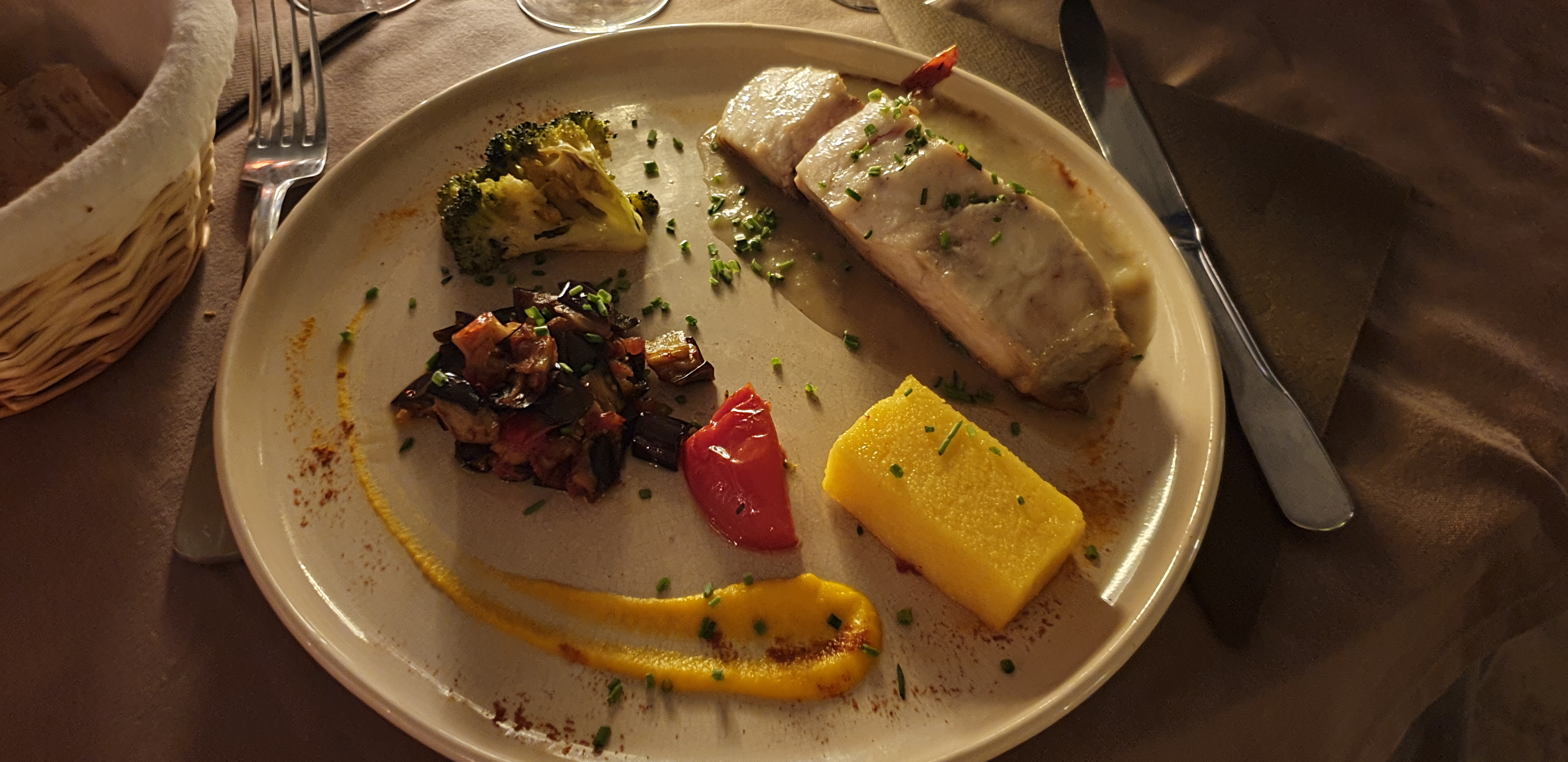 Savoureux, mais pas mémorable. Nous sommes allés dîner et avons essayé les deux options de menu. L'un (langoustines et poisson) était meilleur que l'autre (aubergines et veau). Le service est bon, l'emplacement magnifique. Nous avons eu le vin maison, qui était en fait plutôt bon aussi. Le rapport qualité/prix est correct.