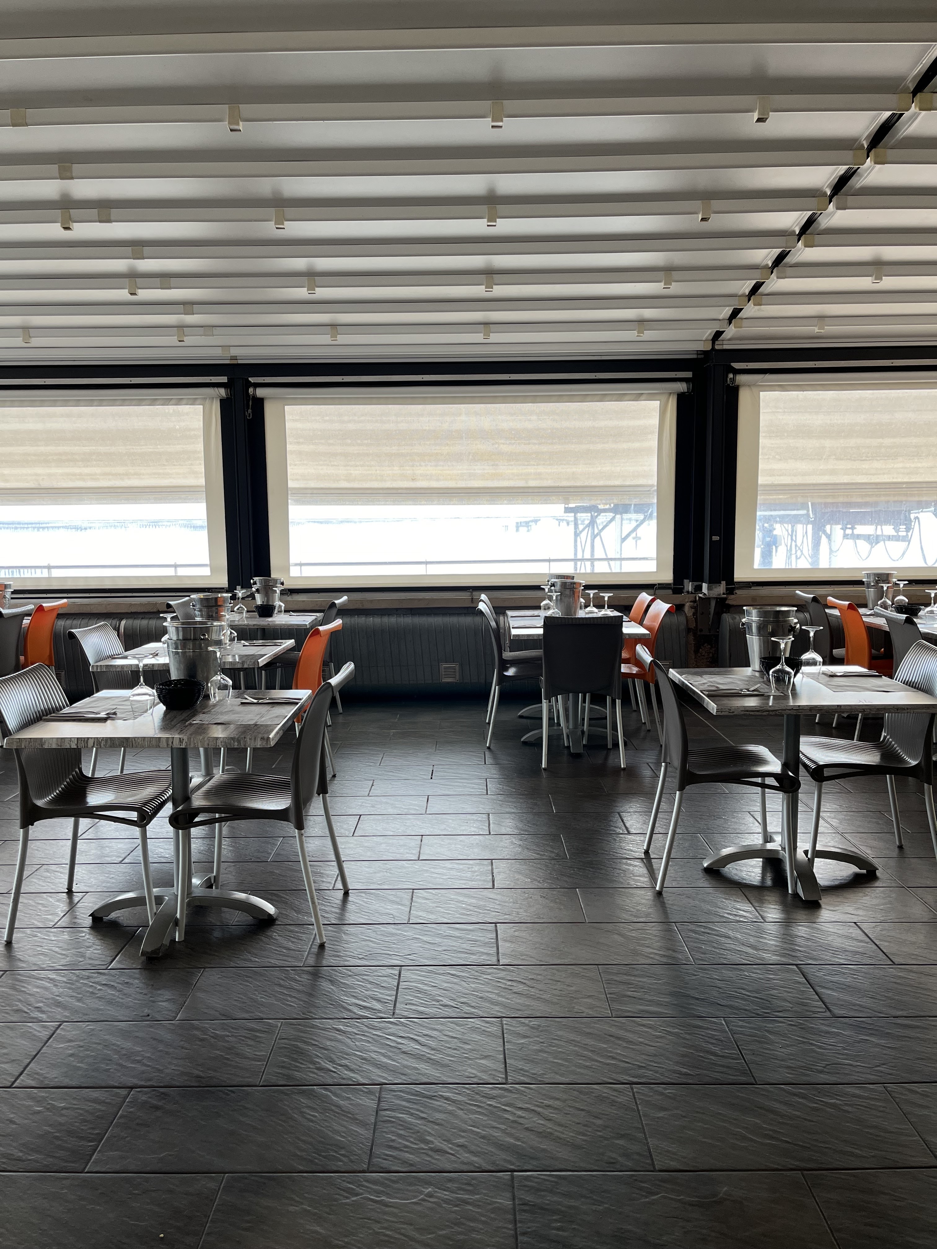 Le lieu et la vue sont sympas, énormément de place pour venir en famille ou entre amis. Carte très variée, mais on vous prévient tout de suite: aucun plat n’est fait maison Un peu surcoté grâce au guide du routard il y’a quelques années… Service très moyen, amabilité du personnel, tables bancales, fruits de mer qui mériteraient d’être posés sur un lit de glace.