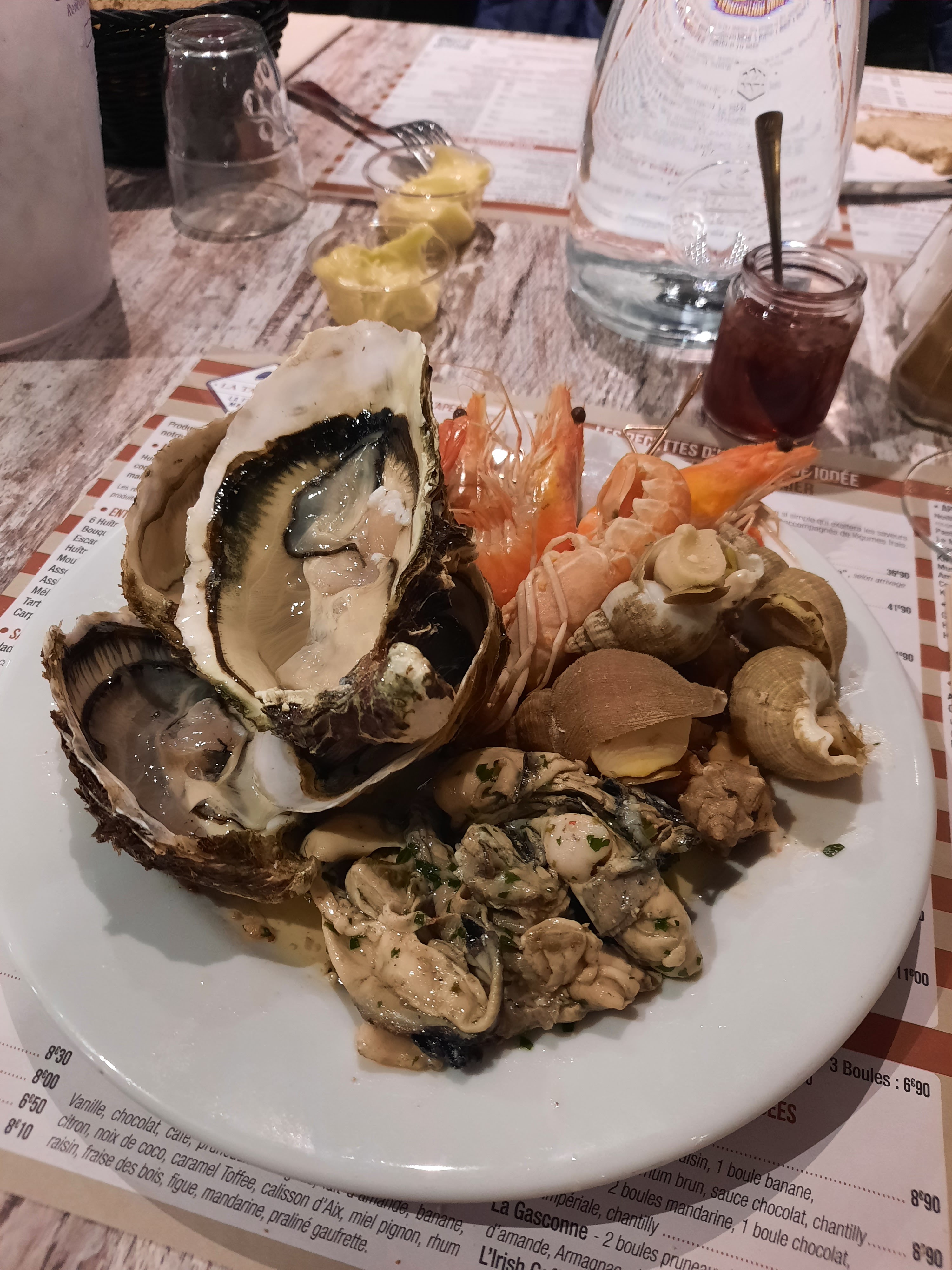 Mitigé, hésite entre moyen et bon. Il se peut que le jour de ma visite ne soit pas le bon. J'ai pris des gambas grillées à la plancha, mauvaise expérience, gorgées d'eau, certaines molles rendent le décorticage difficile, ma préférence va aux biens fermes. Les huîtres sont très bonnes et d'un gros calibre, moules et autres coquillages idem. Crustacés moyens, fruits de mer bons. Le personnel est souriant, à l'écoute.