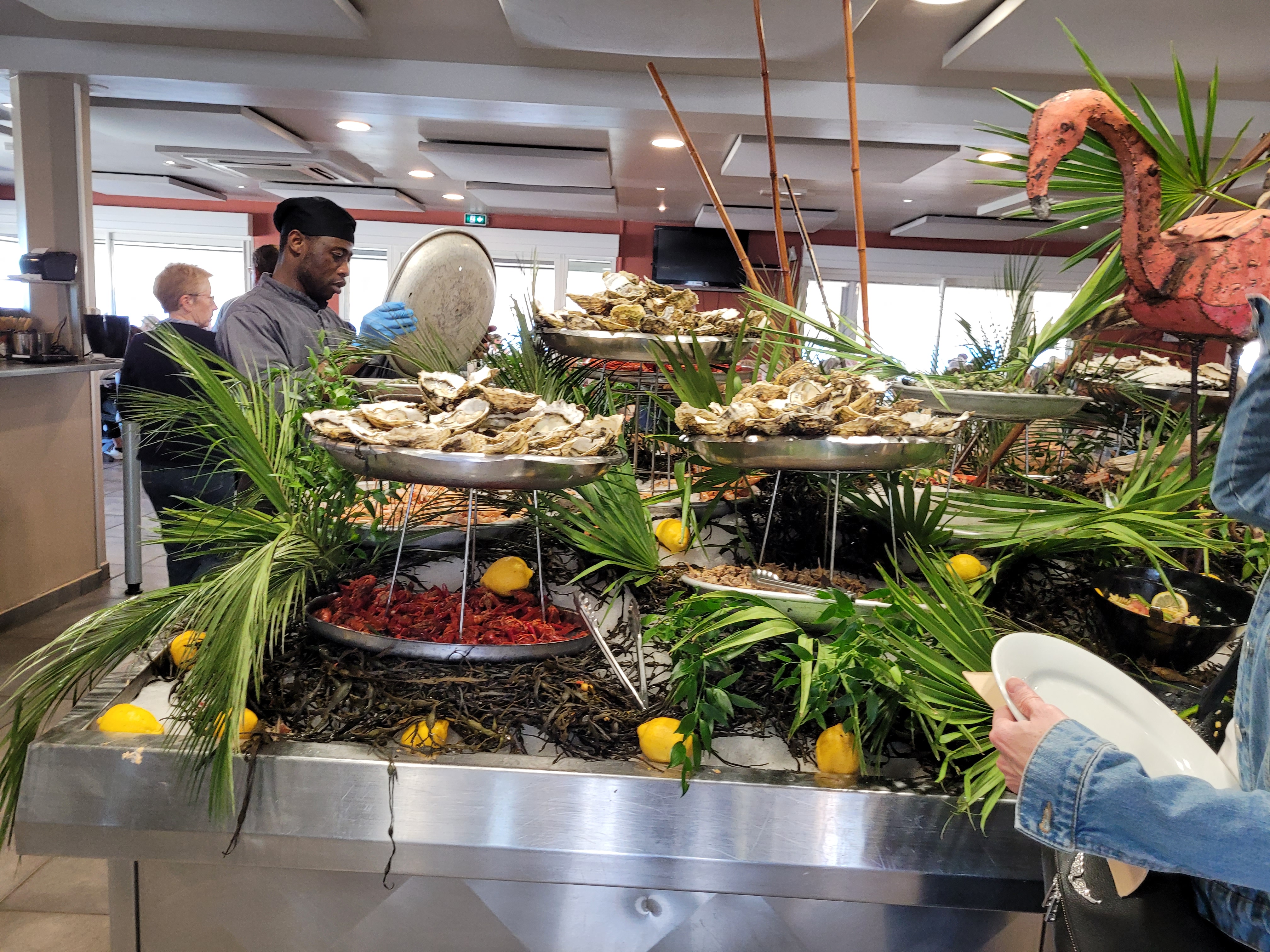 Excellent BUFFET À VOLONTÉ pour celui qui aime les fruits de mer et particulièrement les huitres. Ne pas oublier de stipuler lors de la réservation par téléphone que l'on souhaiterait être placé près des fenêtres.