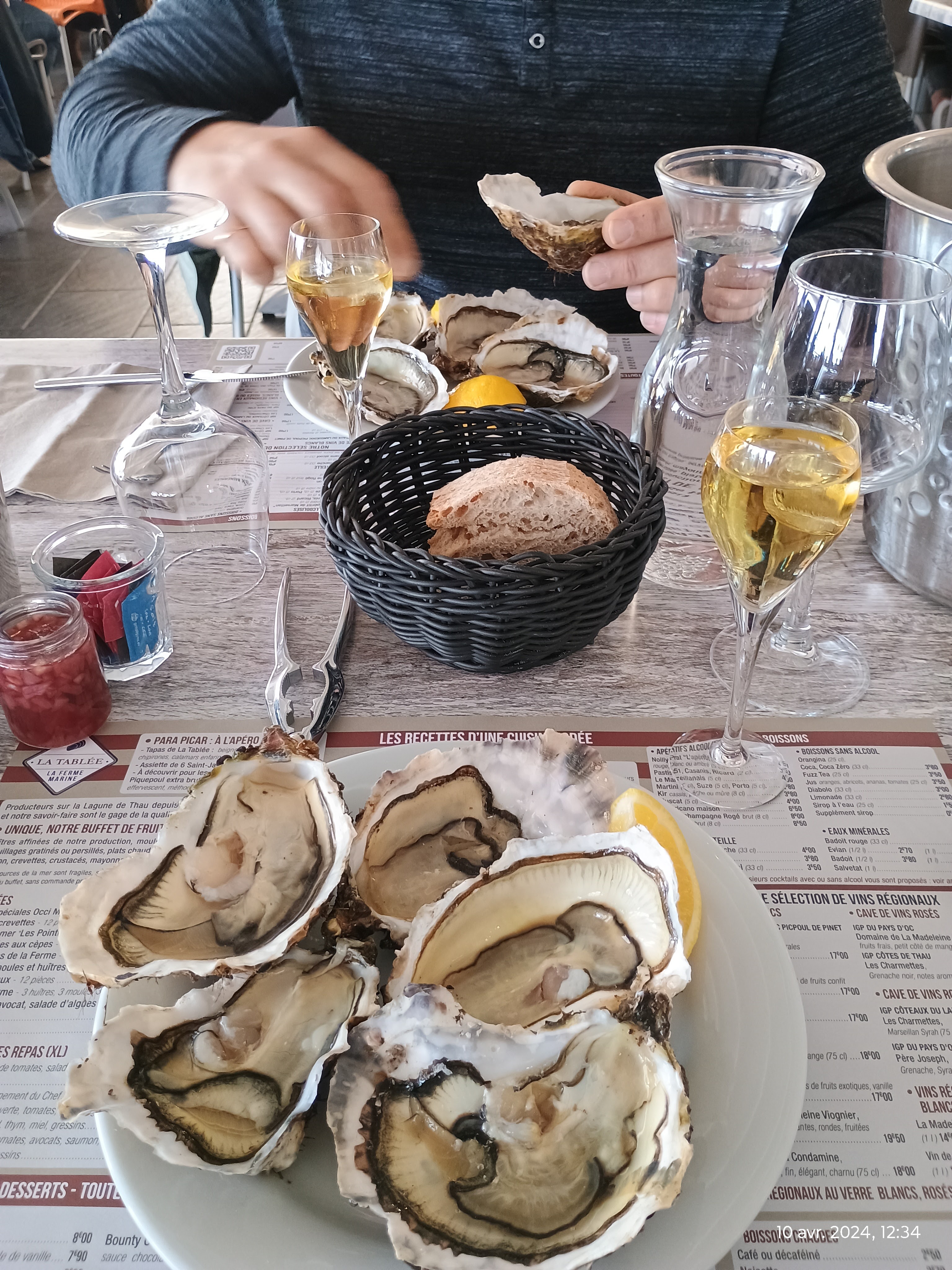 Nous avions voulu réserver et c'était complet. On nous a tout de même trouvé une place pour les 4 bikers que nous étions. La salle en terrasse fermée est spacieuse avec une vue directe sur le bassin de Thau et le parc huitrier. Les serveuses sont sympas et actives ( même ré actives ) . Malgré le monde ce n'est pas bruyant. Le buffet est réellement à volonté et les produits très frais présentés au fur et à mesure qu'ils disparaissent du présentoir. Il y a de tout ou presque. Les huîtres succulentes rivalisent avec les moules crues et les différents cuticulates marins. Le vin au pichet fait bien ''glisser'' tout ça. En bref, dommage que ce soit loin de nous sinon, on en ferait bien notre cantine officielle. Nous recommandons les yeux fermés et sans restriction surtout pour le montant de l'addition très raisonnable. Merci à vous tous et ne changez rien.