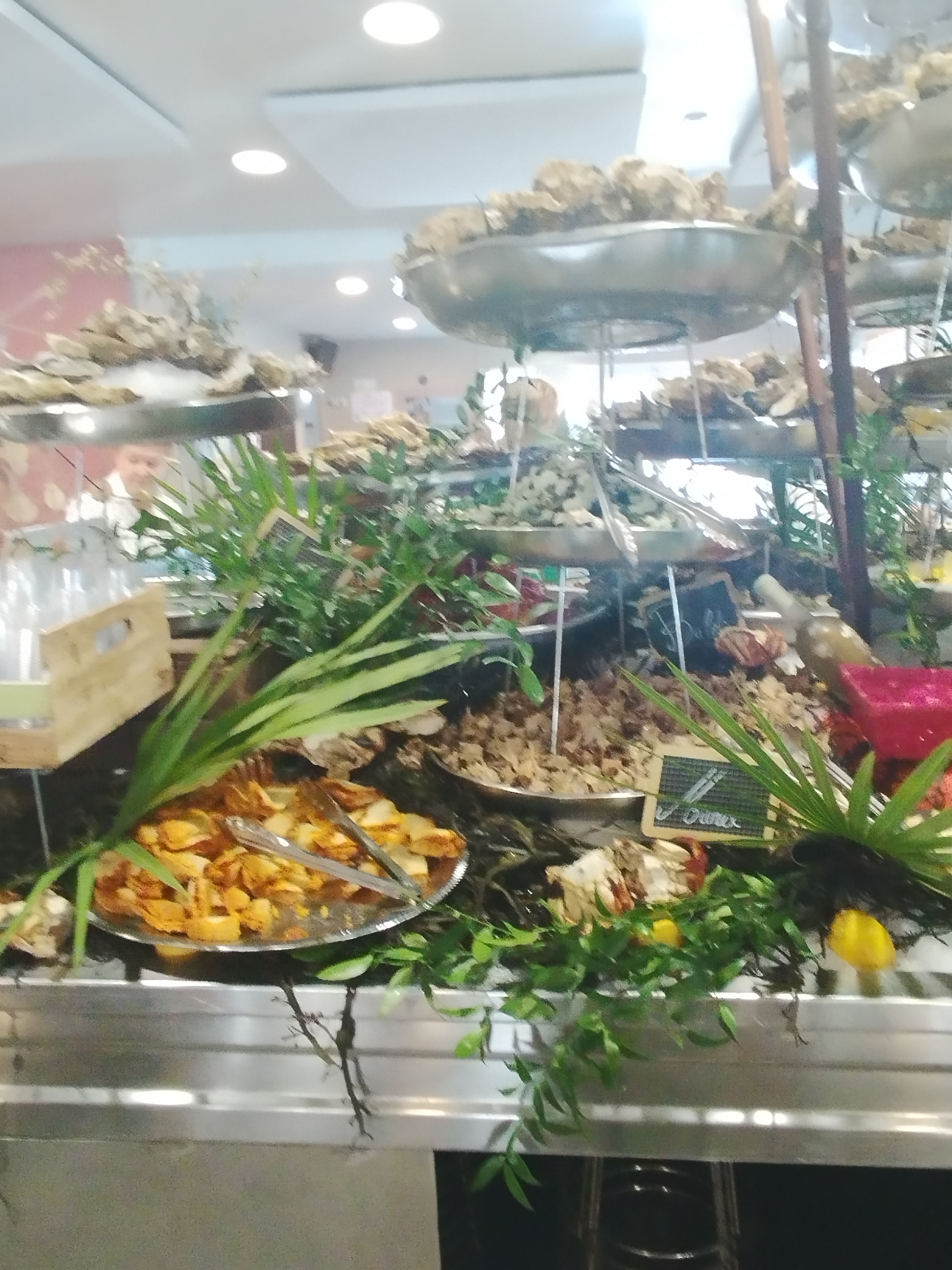 Buffet décevant , mal présenté , aucune classe comme avant ( j'y étais allée cela faisait 5 ans ) , moins de plats ,plat de seiches de dimensions minuscules , seul un plat était copieux et délicieux , c'était le turbot grillé ! Pour le prix , le buffet ne vaut pas le coup.....il vaut mieux prendre un plat copieux ! C'est vrai , que l'amateur d'huîtres , de crabe , de langoustines et de bulots y trouve sont compte ! Mais il reste sur sa faim , car avant on pouvait trouver du poulpe , salade de riz marine etc....et il y avait des nappes ! Sans parler des tièles coupées en petits morceaux qui ressemblaient plus à des miettes . Manque de classe pour un restaurant de fruits de mer. Dommage !