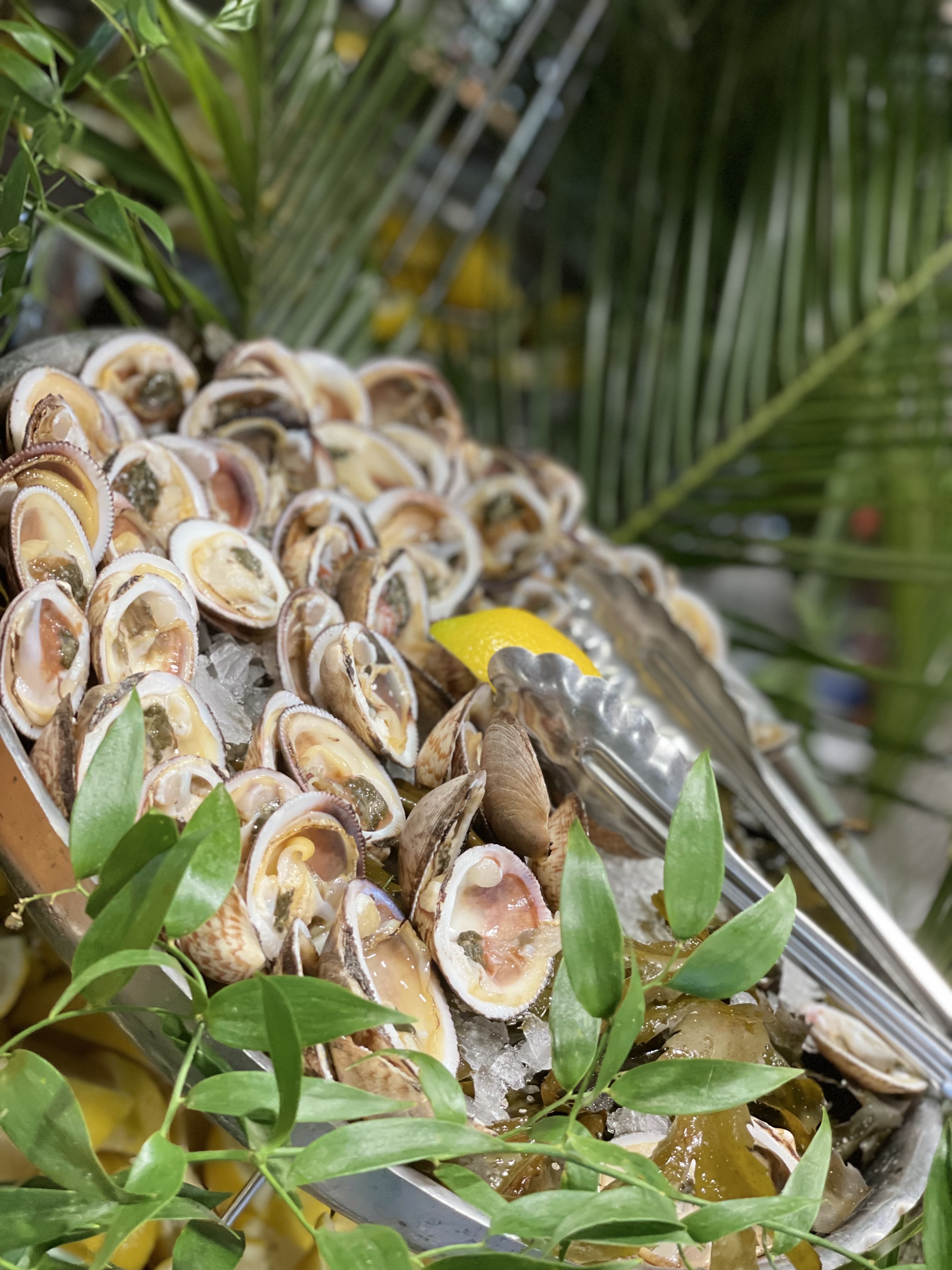 Le buffet est le meilleur moyen de se détruire :) Mangez autant que vous le souhaitez, littéralement. La table du buffet est colorée et pleine de créatures marines fraîches, principalement des coquillages. La seule chose qui n'est pas professionnelle, c'est le fait qu'ils traitent les gens comme un groupe de personnes qui ont besoin de manger et non comme des gens qui viennent là-bas pour de nouvelles expériences. En fait, pour moi, cela ressemble à une grande usine de fruits de mer. Les gens qui nettoient les tables sont très gentils et gentils.