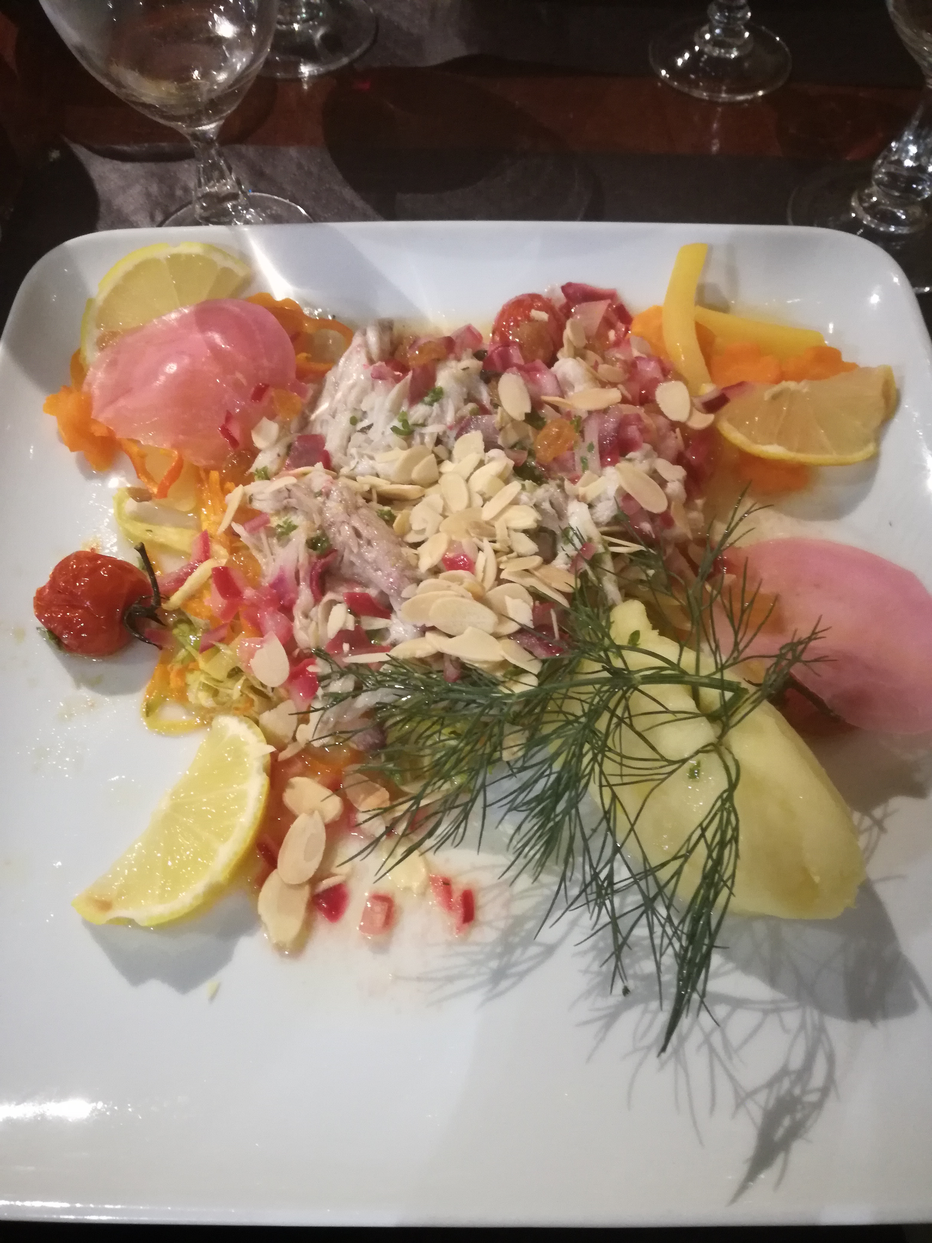 Décevant. Intitulés de la carte plutôt alléchants mais pas au niveau à la dégustation et ne justifie pas le prix. Pas de proposition d'apéritif ou de vin pendant le repas, obligé de commander le dessert des l'arrivée et plus le plat que nous voulions au moment de la commande (pas annoncé). Les plats étaient gras, fades et donc sans grand intérêt. Nous ne recommandons pas.