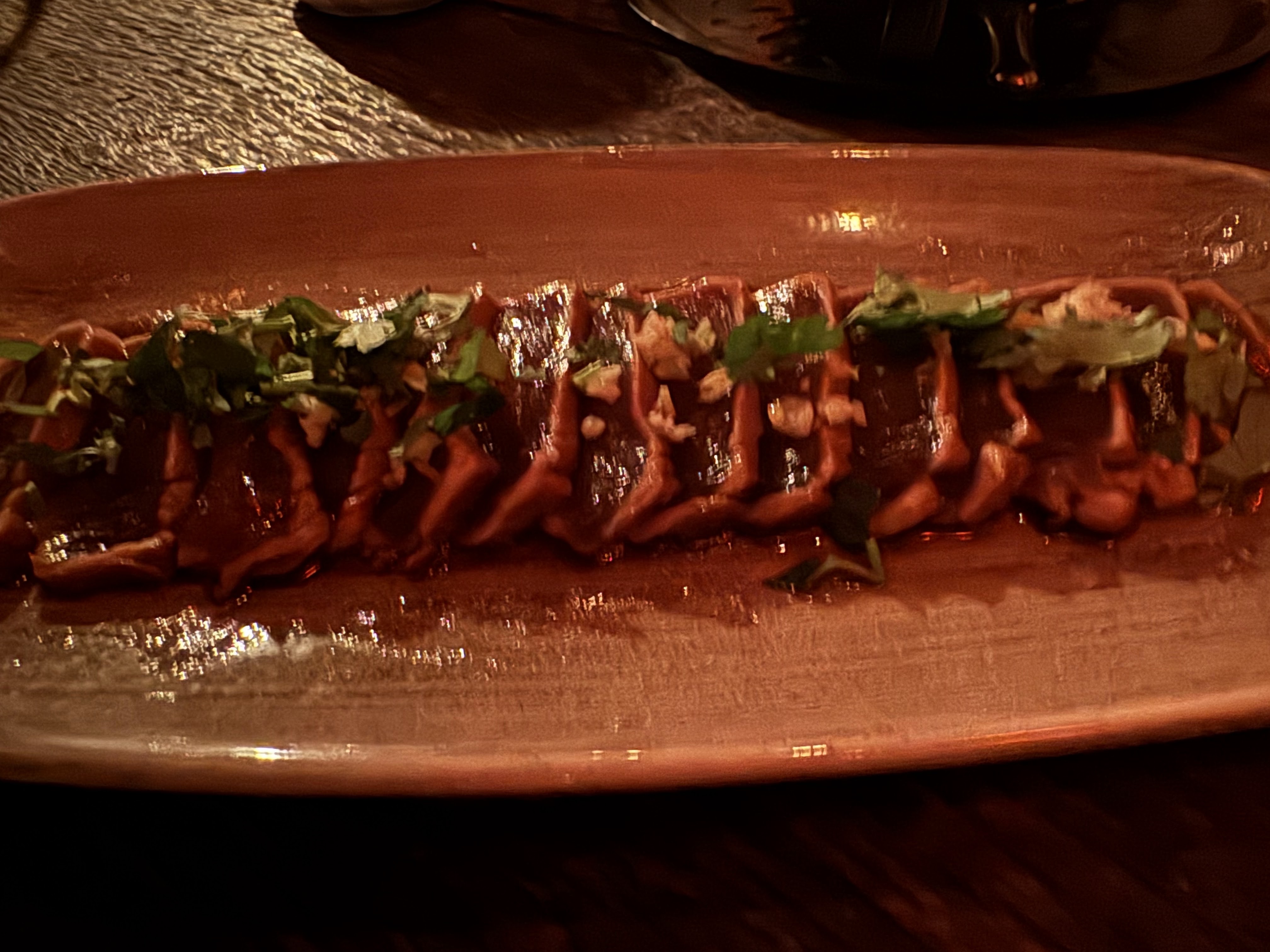 J'écris cette critique alors que j'étais encore au restaurant. Points négatifs : Les tables sont vraiment petites et n'ont pas d'espace, même pour le passage des serveurs ou des invités. Mes amis à l'extérieur avaient été invités à plusieurs reprises à se déplacer pour que les invités puissent passer. Pendant que les serveurs les croisaient. Le service était mauvais et ils servaient des entrées avec le plat principal. Ce n'est pas attendu d'un restaurant gastronomique et malheureusement sans excuses et sans retirer le plat principal lorsqu'on le demande. Positif : la nourriture était excellente et l'ambiance, la musique et la danse du personnel étaient étonnantes. J'espère qu'ils régleront le problème d'espace et accorderont davantage d'attention à l'attitude du personnel.