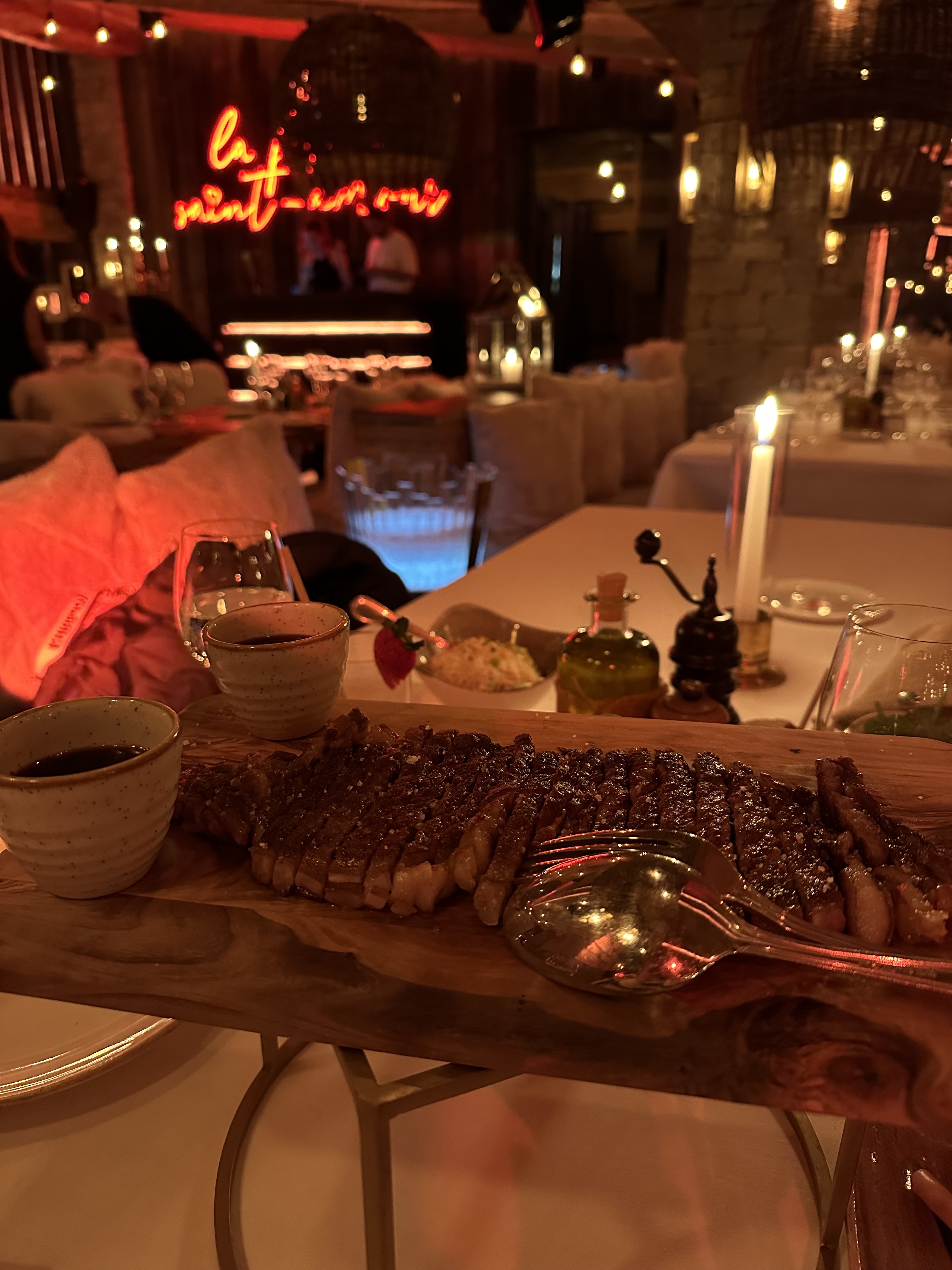 Endroit sympathique déco agréable cuisine fabuleuse on y mange très bien Par contre le service mini le surtout si c’est le premier dès notre arrivée on nous a dit il faut libérer pour 22h on y a pas fait cas . Les entres sont arrivées on a même pas poses les couvert qu’ils prennent les premières assistés vide On a même pas mangé en même temps On vous vide les bouteilles d’eau et de vin afin de vous expédier On était au play on nous retirer le pain 😡😡 Et là j’ai appelé le responsable les serveurs bon communicatif l’essentiel est de libérer la table ils ont un autre service Une honte on a même pas fini qu’ils ont poses la note sur la table on ne l’a même pas demandé Alors conseil il y a d’autre endroit sympa à Courchevel comme le Bal par exemple Guillaume et son équipe son au top Mais pour le saint amour c’est uniquement le nom Management et service à revoir rapidement Passer votre chemin si vous êtes pas Mr Ou Mme