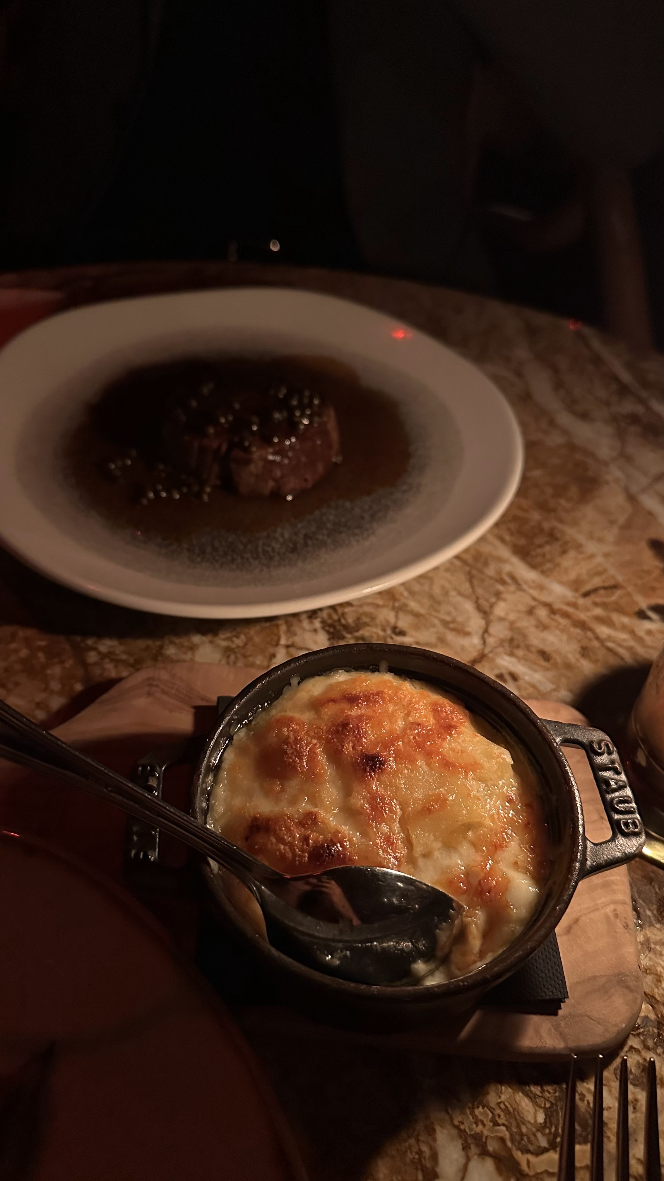 Nourriture mauvaise et sans saveur (viande pas cuite et froide, carpaccio de bœuf fade, purée très moyenne, quantités faibles), service pas au niveau (sauf Etienne qui est très pro), prix exorbitants pour la qualité. Les deux personnes ayant mangé la côte de veau ont été malade toute la nuit ! Si vous n’avez pas une table à 3000€, vous serez méprisés ! On nous demande de ne pas fumer alors que les clients des tables d’à côté fument sans aucun problème ! On nous débarrasse les assiettes alors que nous mangeons encore (et lorsque je le fait remarquer au serveur, il hausse les épaules d’un air condescendant et continue à retirer les assiettes !) Toujours une bonne ambiance en revanche, qui fait un peu oublier le dîner médiocre.