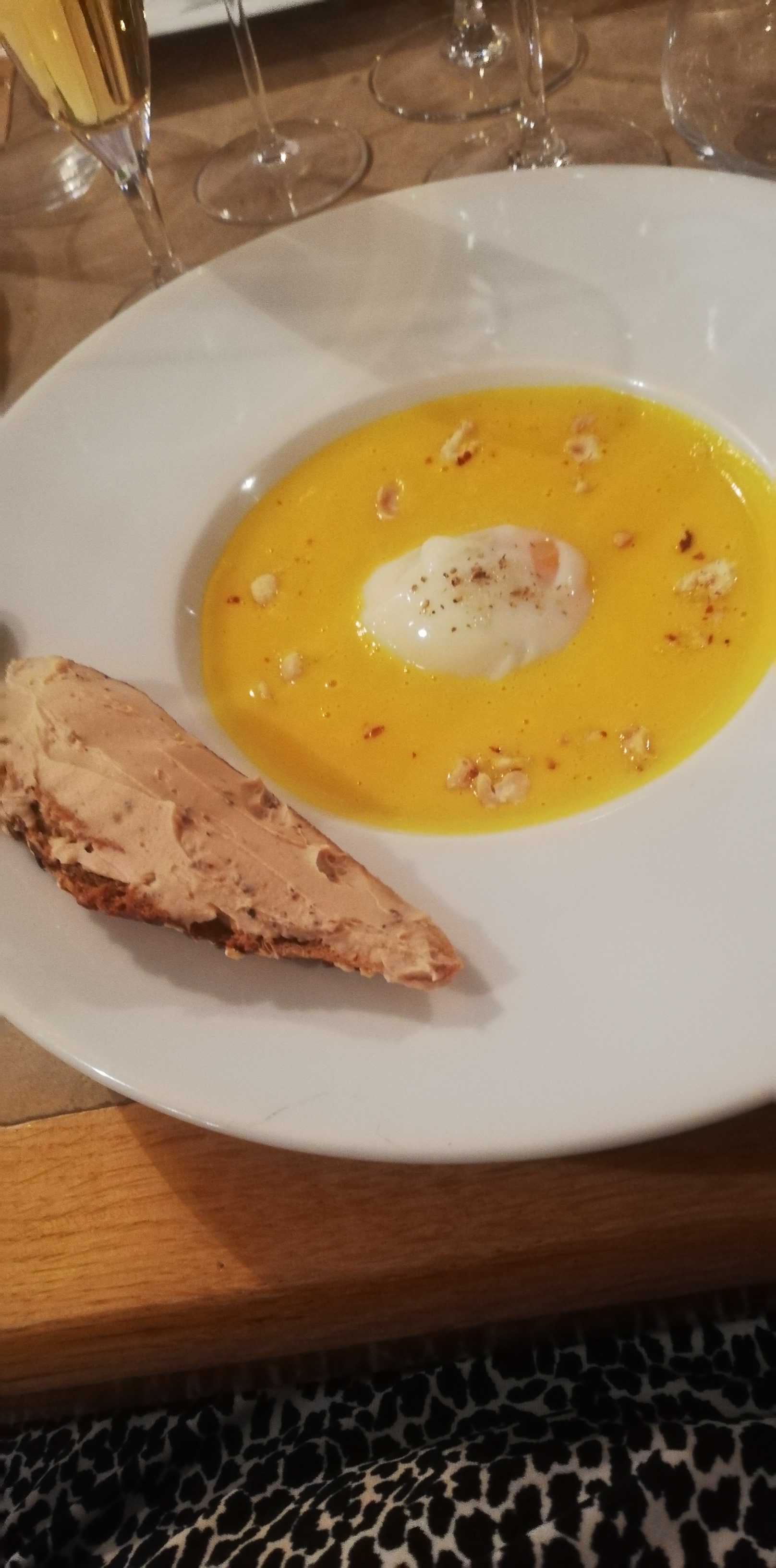 Premier passage pour dîner avec des collègues. Les produits utilisés sont très bons et la préparation est réussie ! Tout était très bon ! Sur les recommandations de mon chef, je teste le soufflé au Grand Marnier en dessert... c´est assez impressionnant en terme de volume mis c´est très léger ! Une bonne soirée passée aussi en découvrant un vin de la région et un Cognac que je ne connaissais pas...