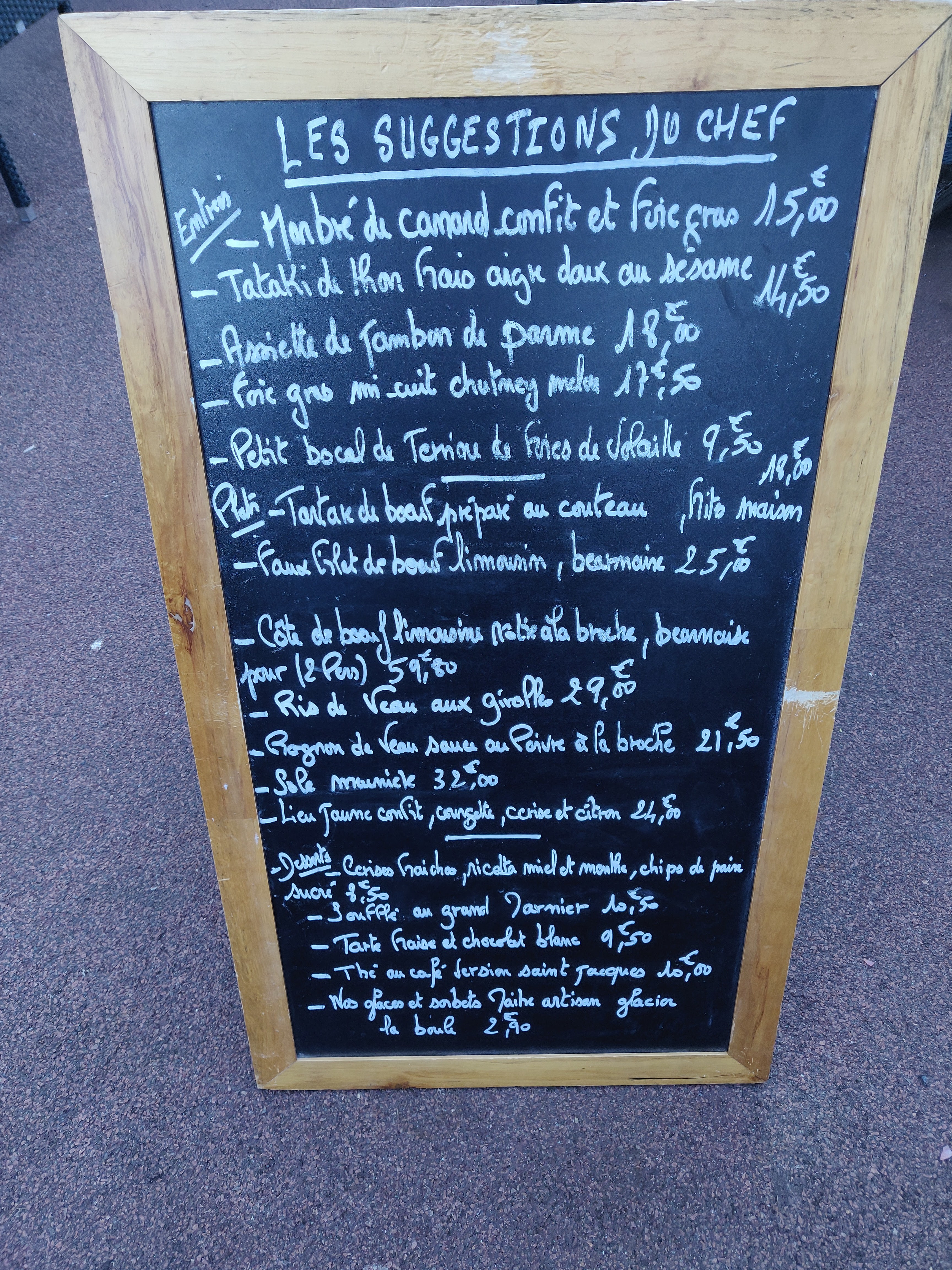 Lieu sympathique, service agréable. Gambas délicieuses en entrée. Tartare decevant, trop de sauce type Macédoine(on ne sent pas assez la bonne viande du limousin. Bon pavé en revanche servit avec petits legumes et champignons, le tout bien réalisé