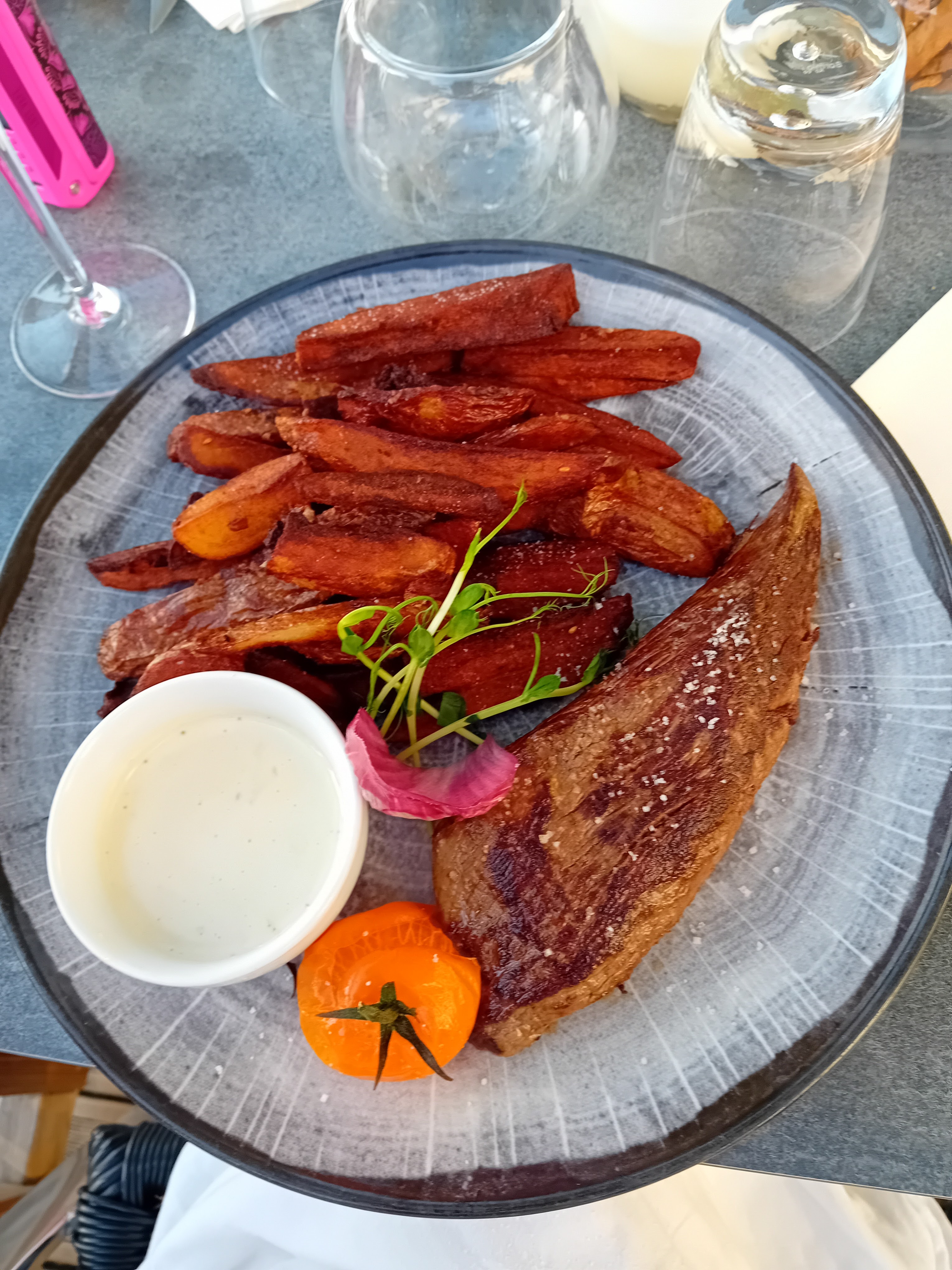 Une cuisine très bonne ! Petit bémol sur le cocktail sans alcool qui est clairement du vol… hors de prix et servi dans un coupe à champagne d’à peine 12cl… franchement autant ne rien proposer. Et sur les suppléments à tout va dans le menu ou parce qu’une femme enceinte ne peut prendre un dessert du menu, +3, +4, ca doit être rentable 😅 il faut garder les pieds sur Terre 😊