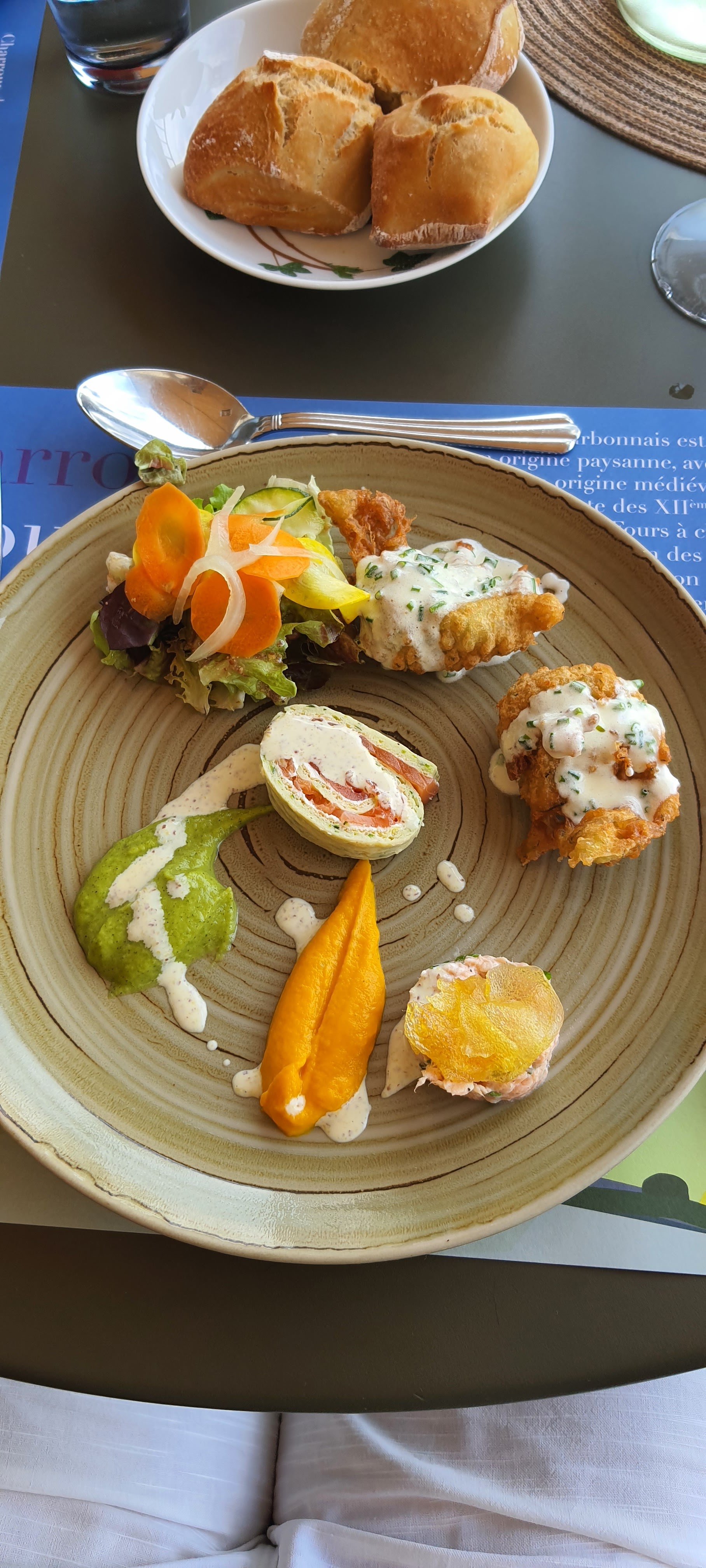 Roooo que c'était bien.. Super service par des petits jeunes en emploi d'été je suppose mais qui s'en sont super bien sortis.. plats beaux et bons.. Une carte peut-être un peu compliquée de premier abord.. Cadre splendide... et le dessert.... j'en salive encore 🤤