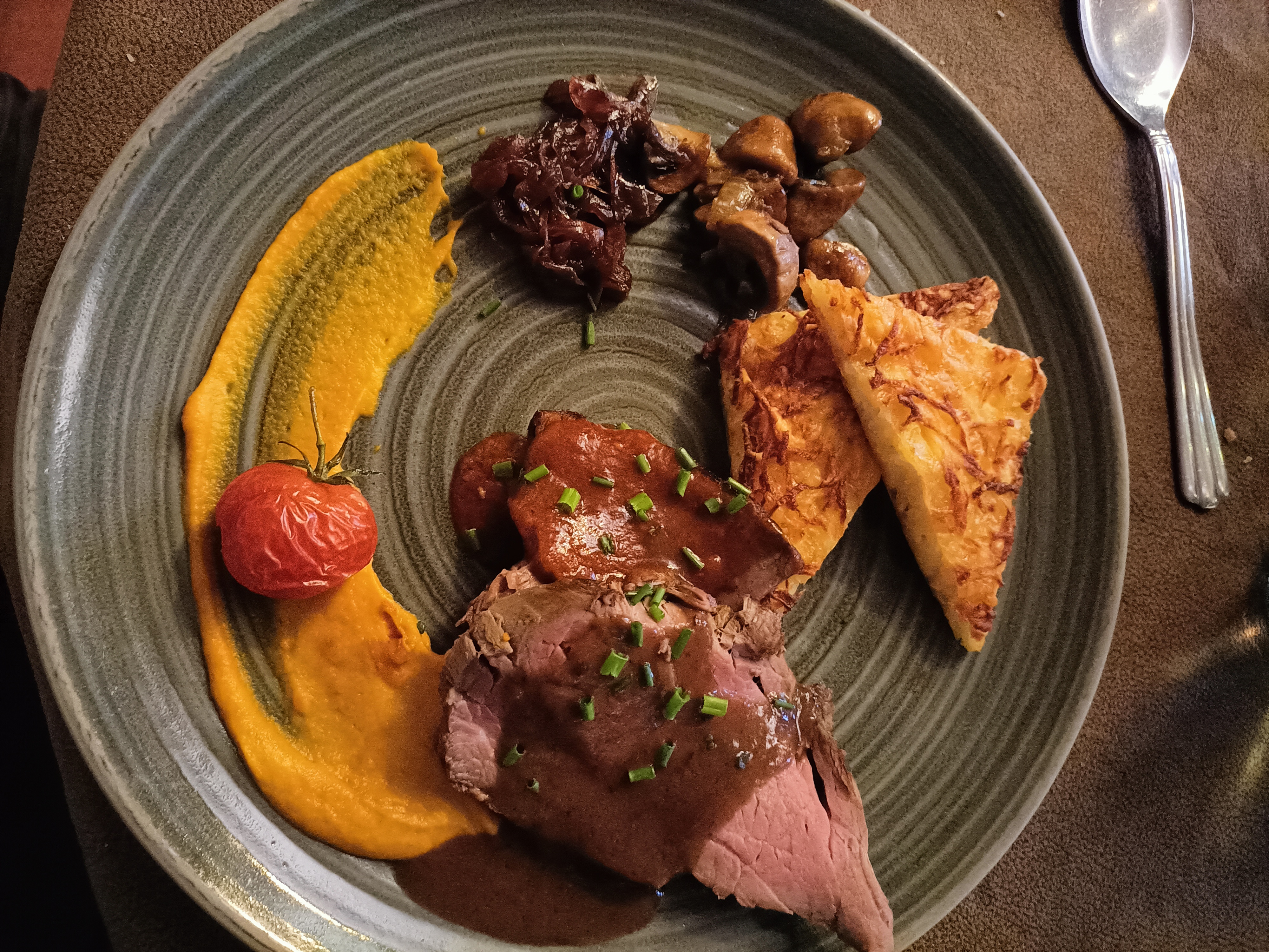 Excellente cuisine. Très belle vue sur la campagne environnante. Service agréable. Un rapport qualité-prix imbattable. Et le petit plus: le chariot de fromage.