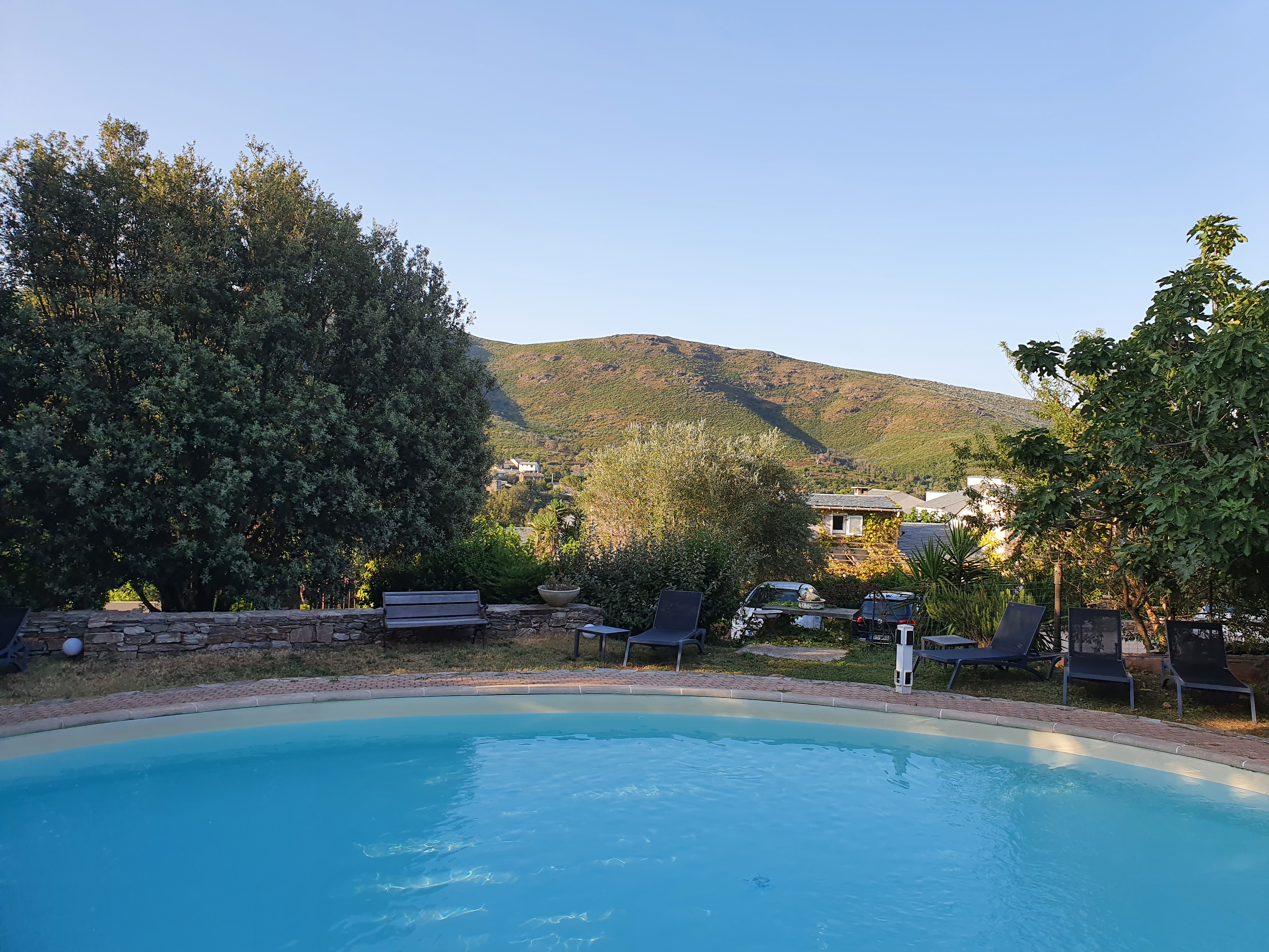 Mais quel accueil chaleureux et sympathique nous avons reçu par les propriétaires, pourtant en pleine saison (ils ont beaucoup de travail). La piscine est hyper agréable avec les foutas à disposition. La chambre est climatisée , un peu sombre mais c’est pour la fraîcheur. Que dire de la table … nous avons très bien mangé avec des boissons à tarif abordables. En plus le coin propose pas mal de randonnées dans le maquis. Il faut s’arrêter à la ferme U San Martinu