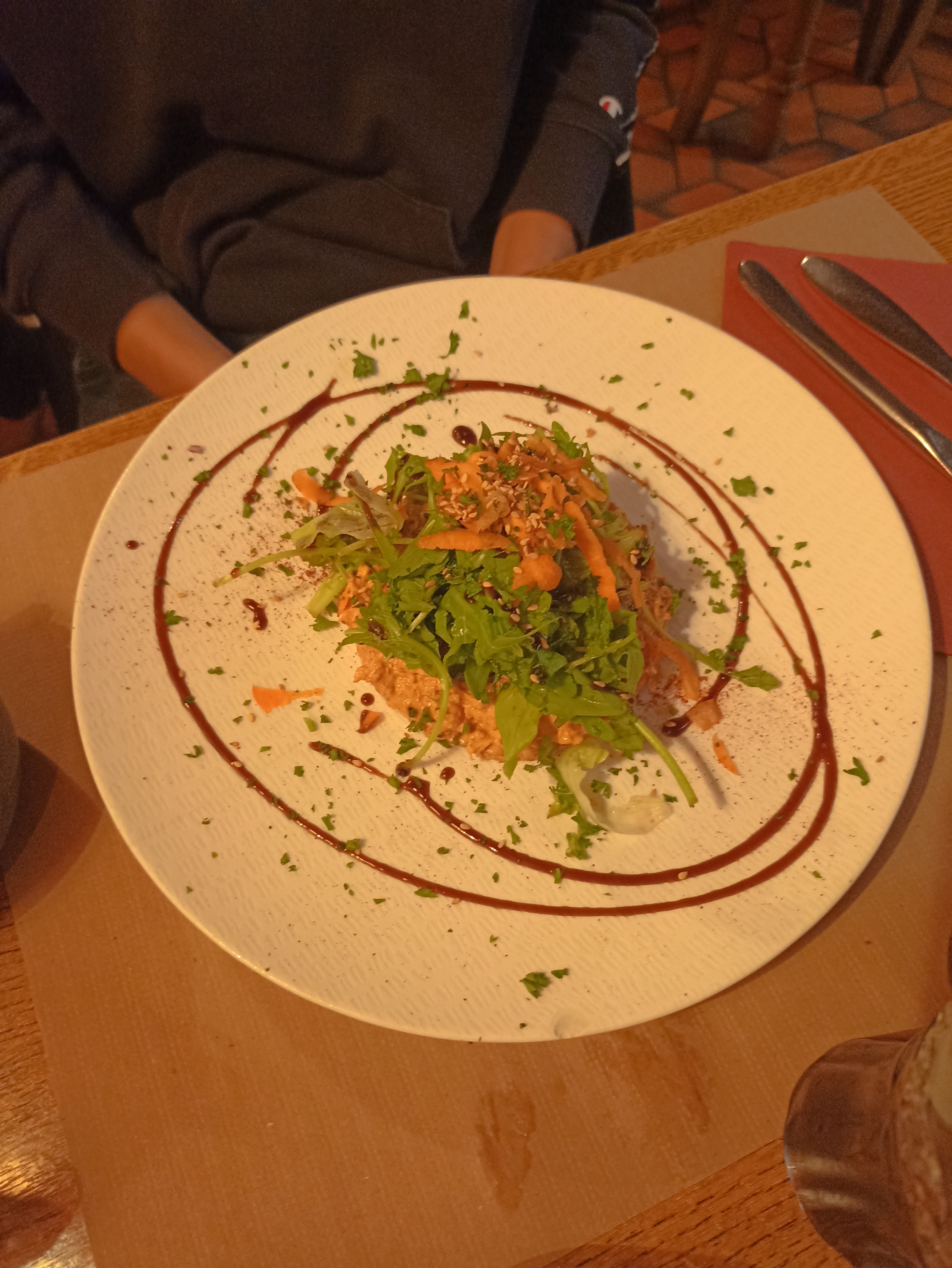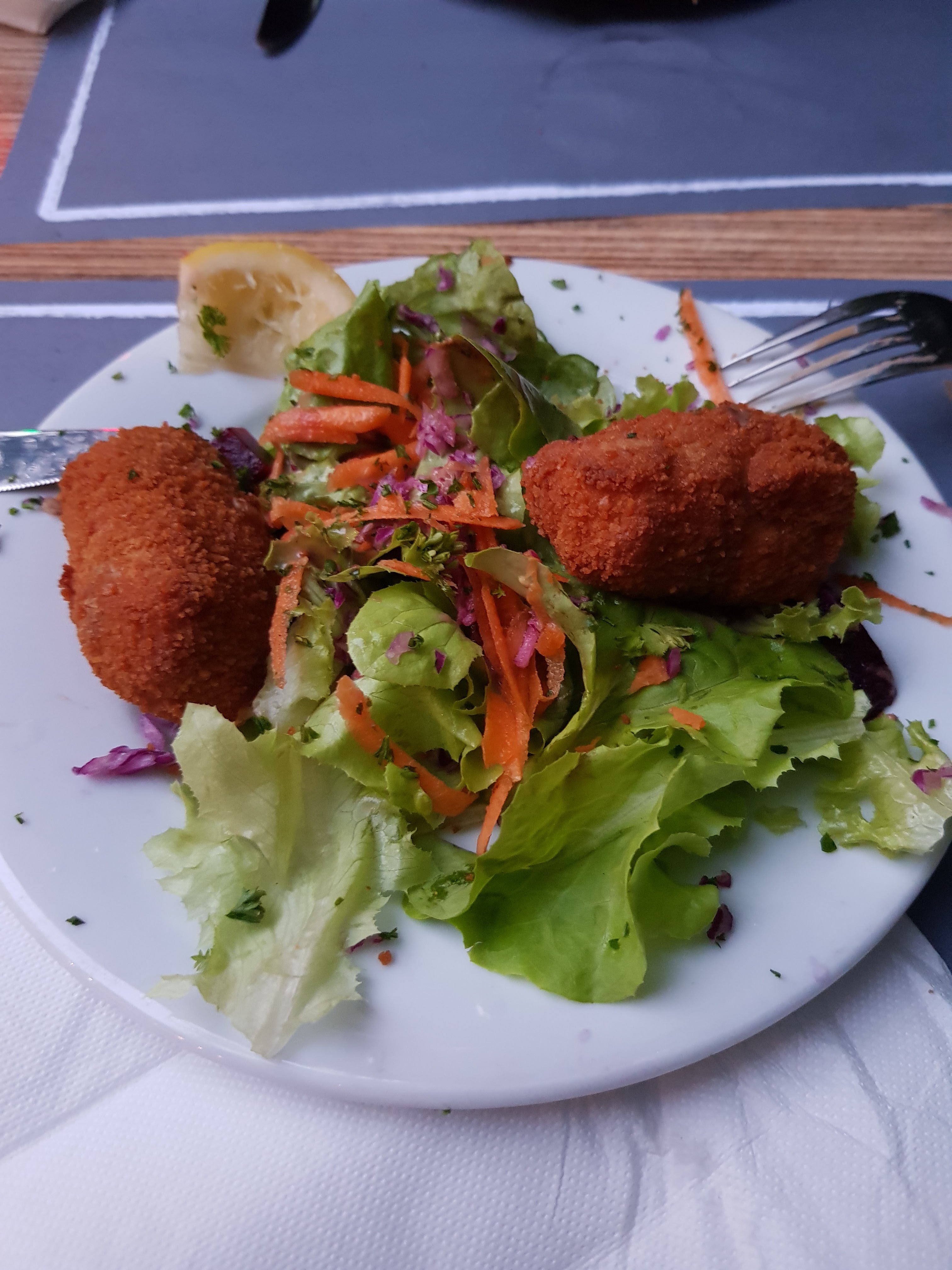 Table branlante, salade pas assaisonnée, croquette de crevette pas terrible, je ne recommande pas