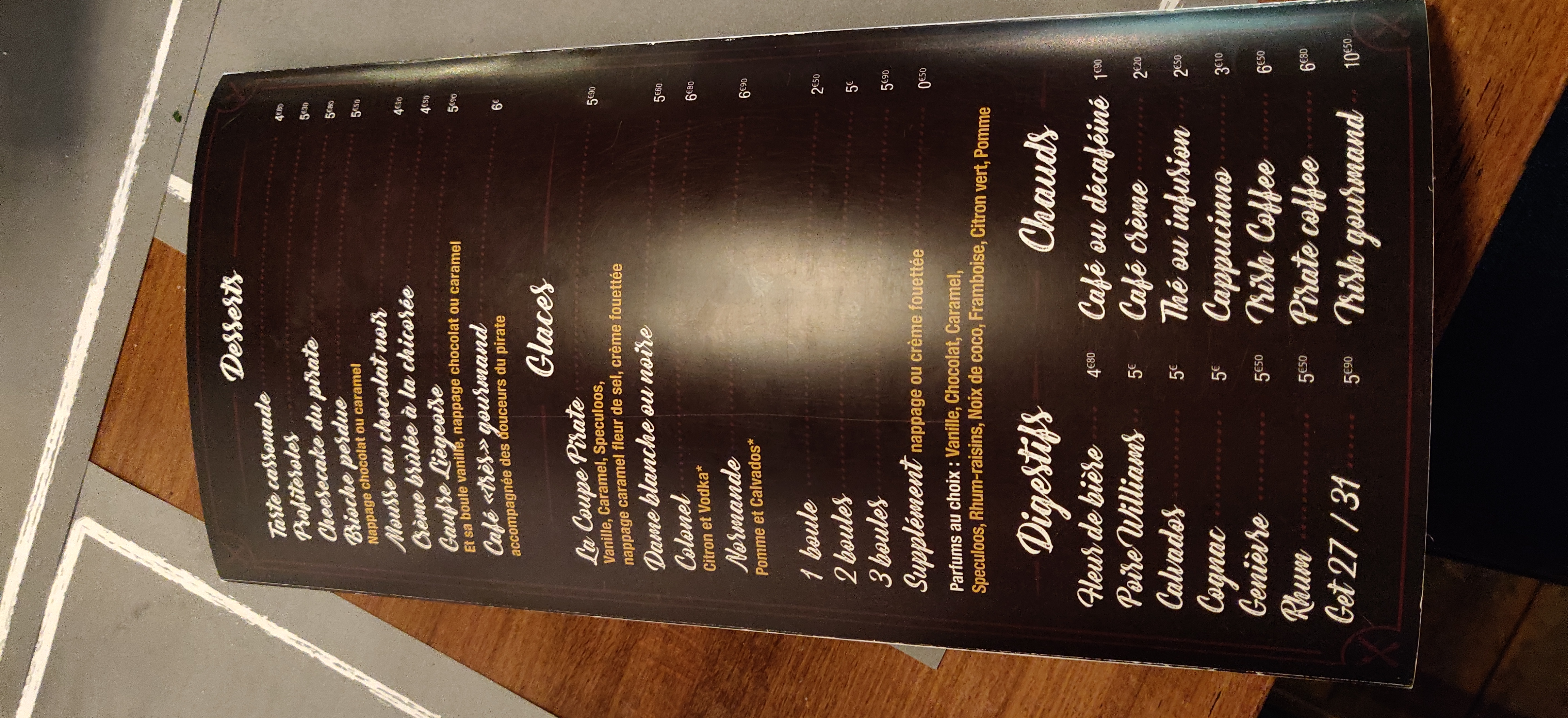 Le lieu est génial. Très original. Même si nous avons cherché la Fiancée du Pirate ;-) Pour le repas, j'ai pris la suggestion du jour en entrée (Tartare de Thon) et un onglet sauce maroilles qui était fantastique. Petit bémol sur la crème brulée dont le sucre avait été un poil trop... brûlé la rendant un peu amère. Pour le reste, le tarif est très raisonnable à la vue de la qualité globale du repas. Je recommande fortement !
