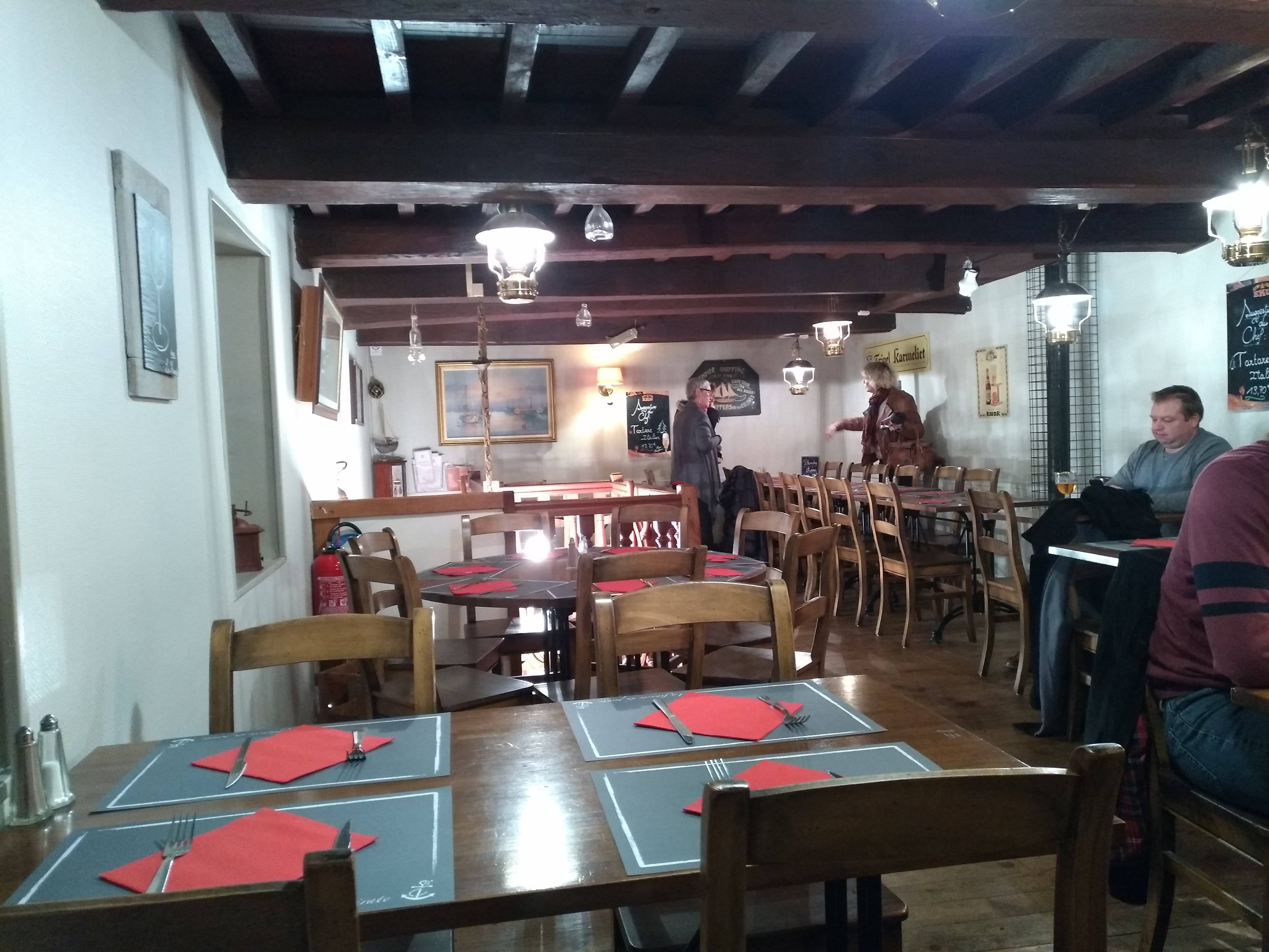 Resto ou la carbonnade est très bonne dans un décor plutôt agréable. Le serveur est très pro. Par contre deux petits bémols : Le pain est servi en très petite quantité,soit 3 petites tranches alors que nous étions 5 ... Nos boissons sont arrivés au 3/4 de notre plat principal ,après avoir été réclamer pour les avoir. Sinon un assez bon rapport qualité prix.