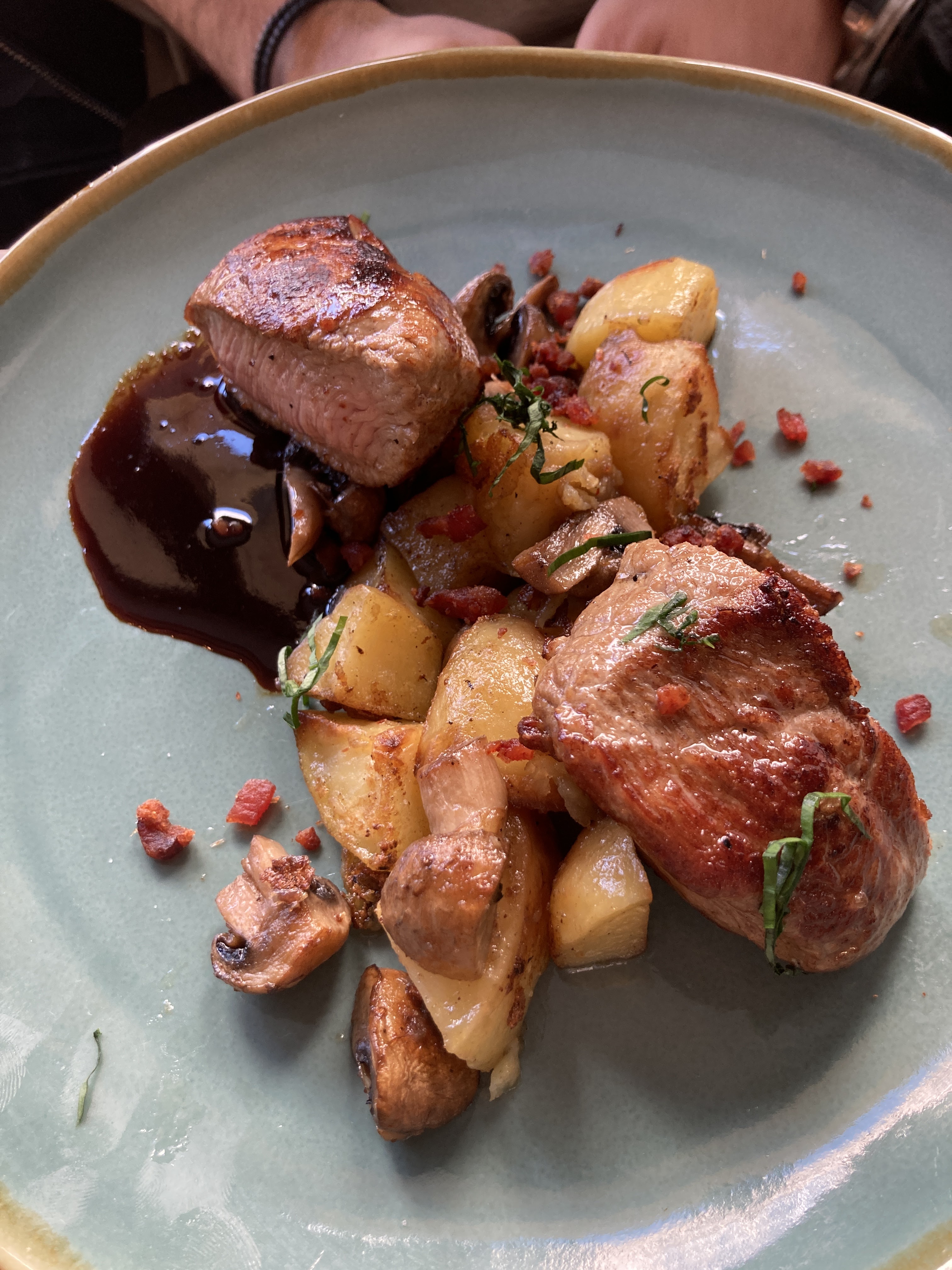 Un peu decue car on nous a fait paye 23 euros un menu midi affiche a 19 euros et sans nous prevenir a l'avance. Entree et dessert pas top...piece du boucher rumsteak correct mais ne vaut pas les 23 euros. Acceuil un peu froid.