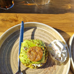 Déçue ! Mon pain burger était grillé, poulpe pas cuit. J’ai demandé sans oignon à ma grande surprise j’en avais pas dans mon burger en revanche dans les frites oui. Le chou de mon éclair pistache complètement détrempé…