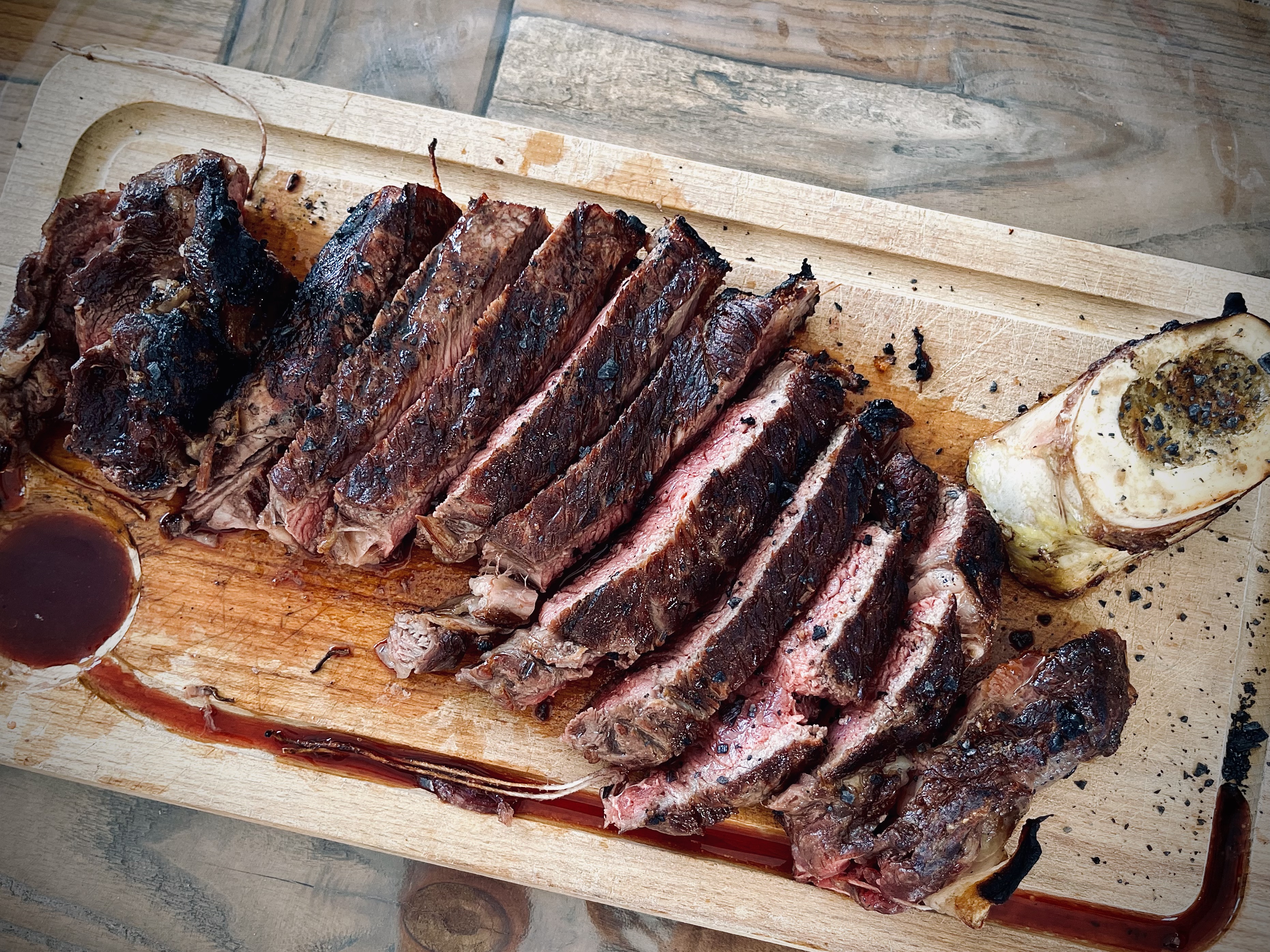 Goûtez la côte de bœuf succulent! ambiance tres sympa tous les produits sont locaux et frais je recommande
