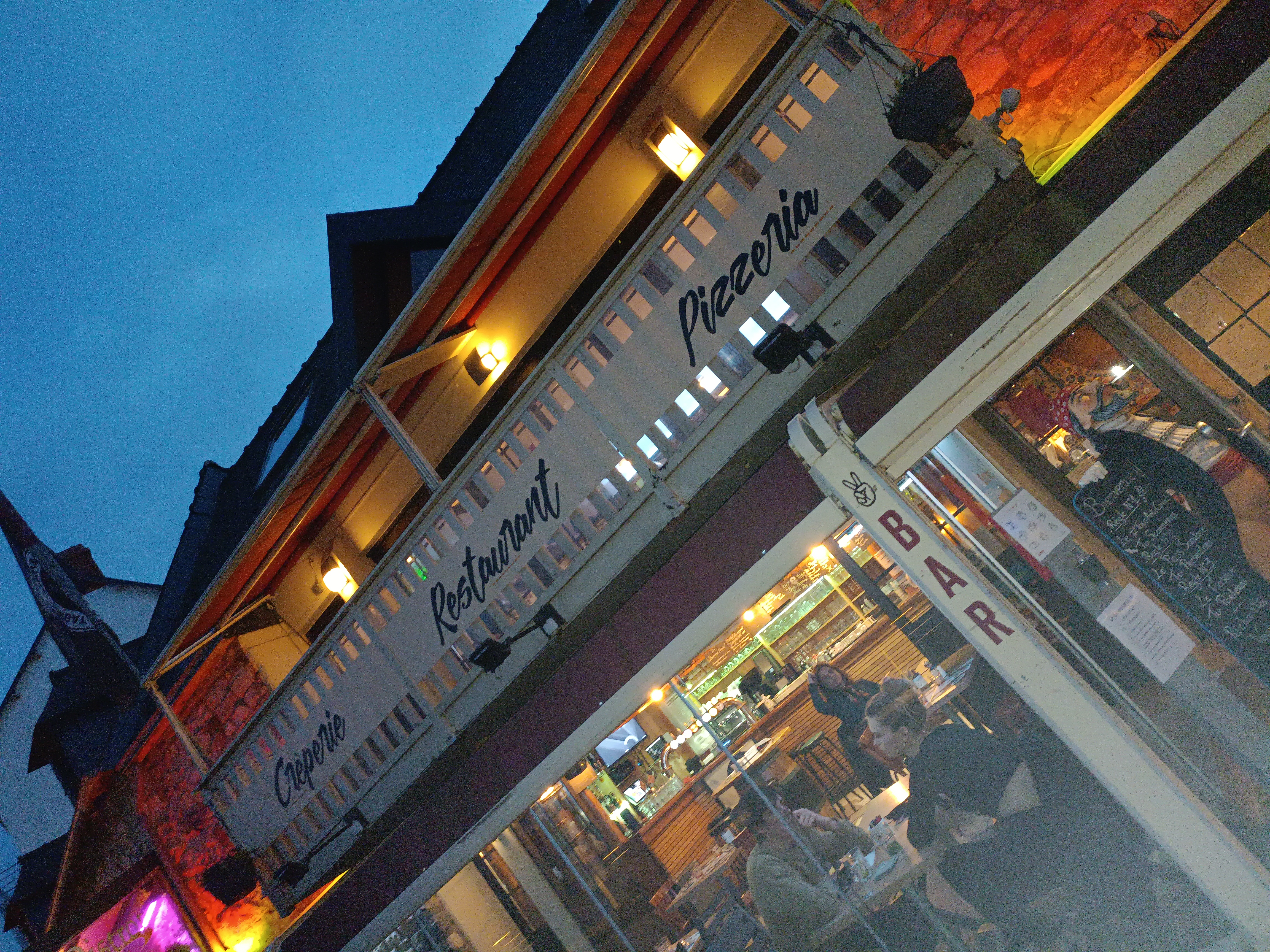 Nous avons attendu plus d une heure pour manger notre crêpe . Petite erreur du serveur. Le restaurant a vite été submergé par les clients et peut être manque de serveur (se).Et plusieurs restaurants fermés à côté. La crêpe salée poivrons chorizo était très bonne . La sucré chocolat maison pas terrible. Espérons que ça va s'arranger pour la haute saison.