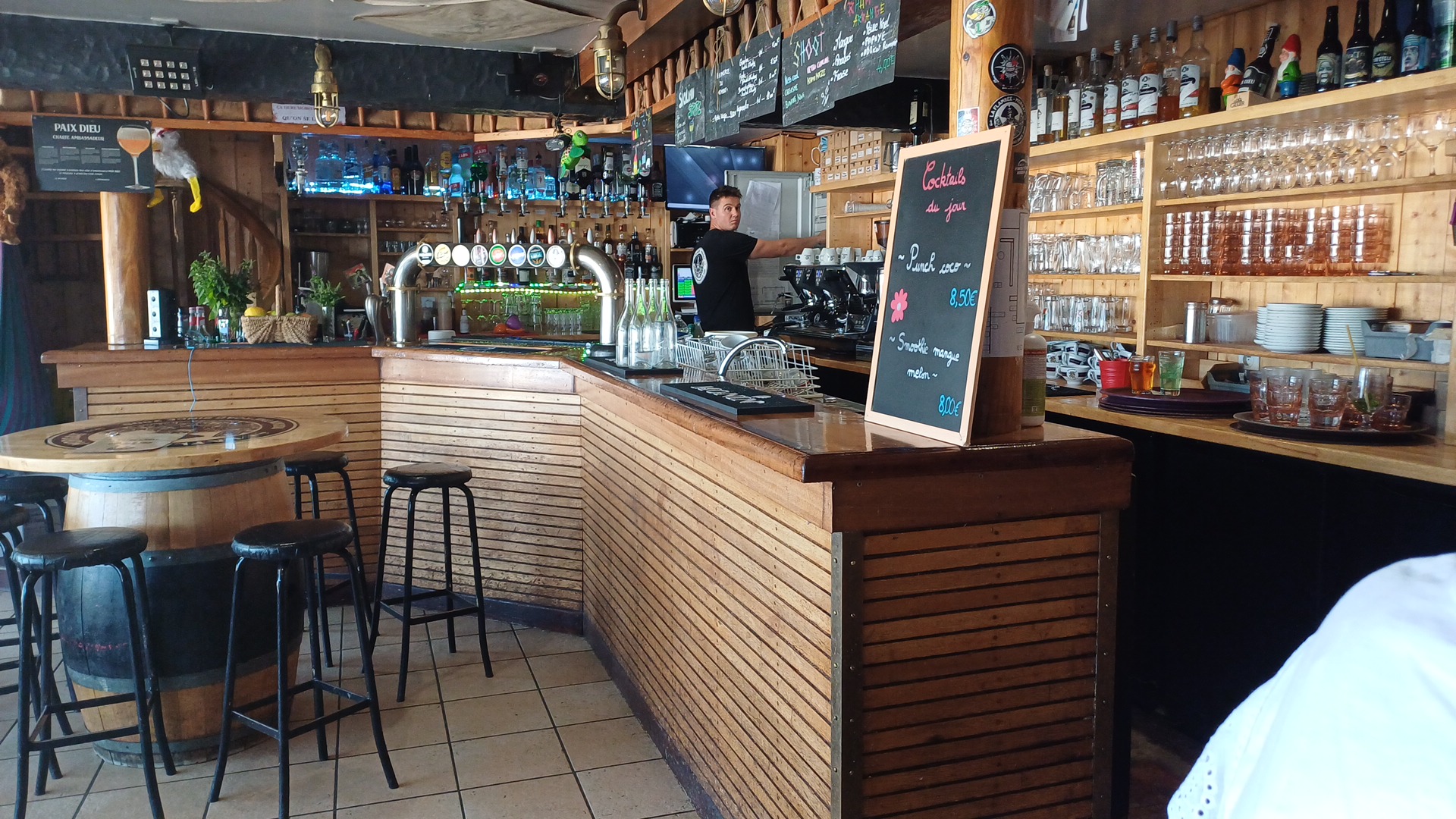 Ressemble à une taverne au bout du monde Sourires et service agréables même si les clients sont nombreux Juste la musique un peu forte en fonction de la table occupée