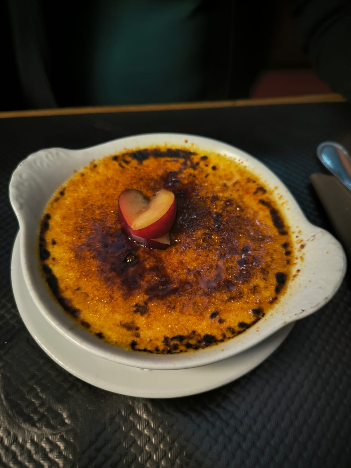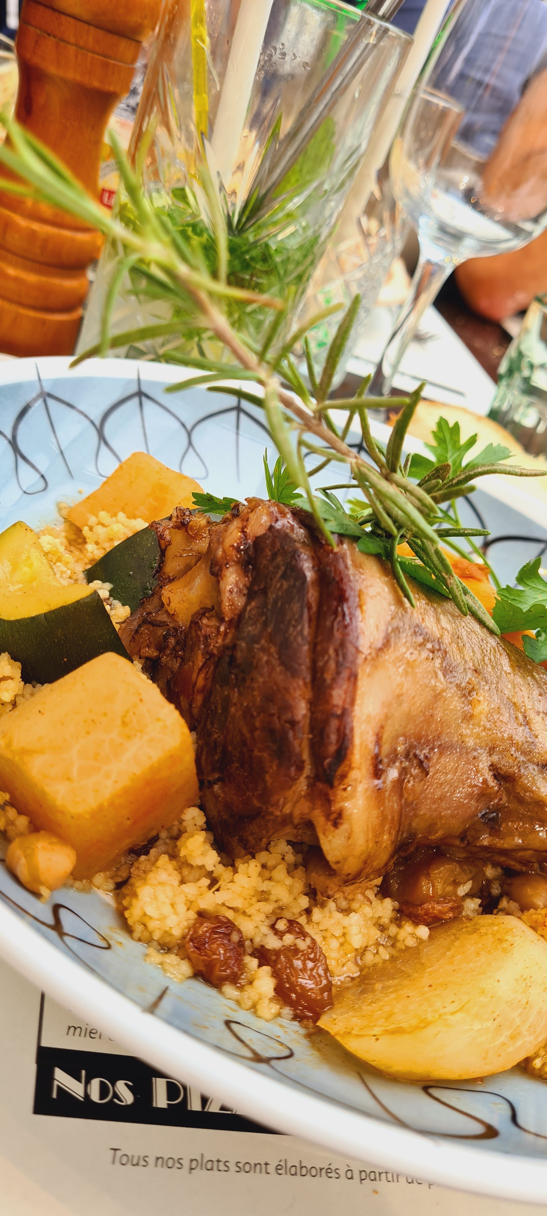Recommandé par des amis, je suis déçu par le manque de souplesse dans le choix du menu alors qun des plats est annoncé manquant. Impossible de remplacer ce plat même par un plat moins cher. Sinon entrée œuf meurette au top, viande onglet commandé à point servi saignant et une brochette de gigot d'agneau (du chewing-gum). Dommage ! Pour terminer le dessert, poire pochée, là aussi très bonne.