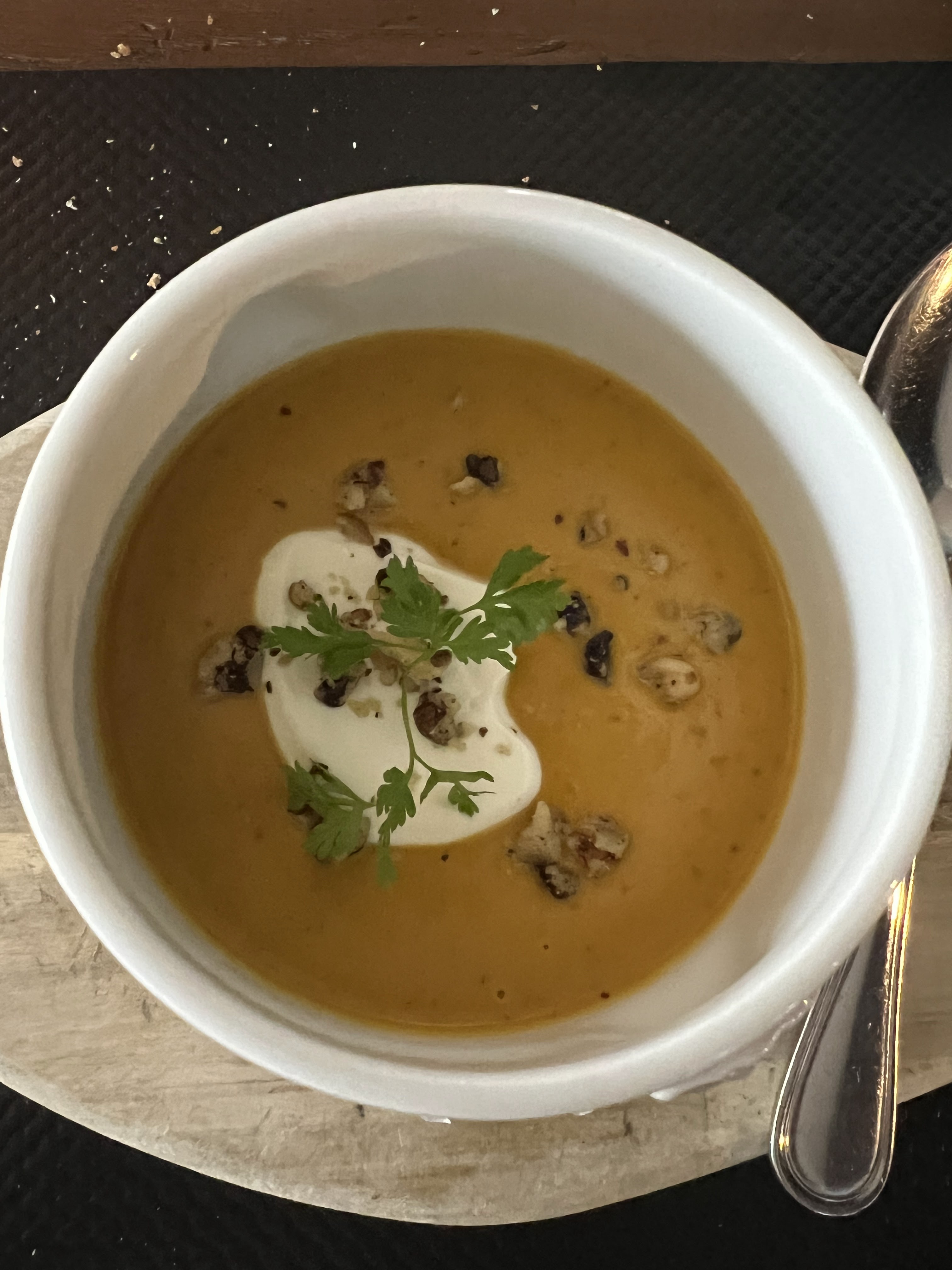 Très bon repas avec des aliments de qualité. Une entrecôte parfaite un vrai délice et le velouté de potimarron extra