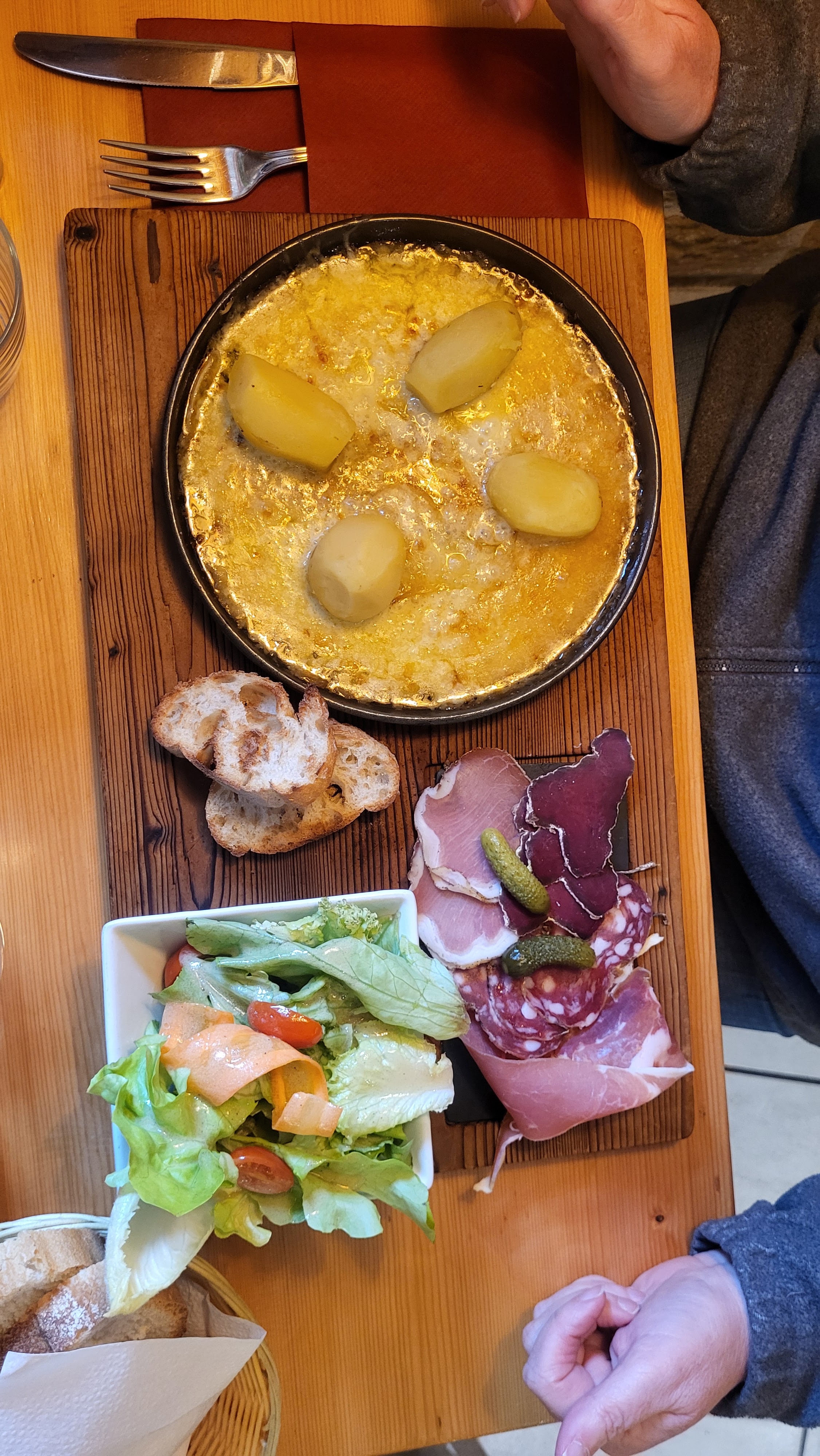 Superbe soirée où nous avons dégusté des tartiflettes cèpes et chèvres excellentes sans compter sur le dessert petit chaperon rouge à ne pas manquer... Merci aussi pour les chiens A bientôt Finalement on y retourne ce soir.... Ce soir fondue très copieuse avec jambon pays. Petite préférence pour la tartiflette hier qui est sublime 👍 Merci pour votre accueil très chaleureux A bientôt 😍