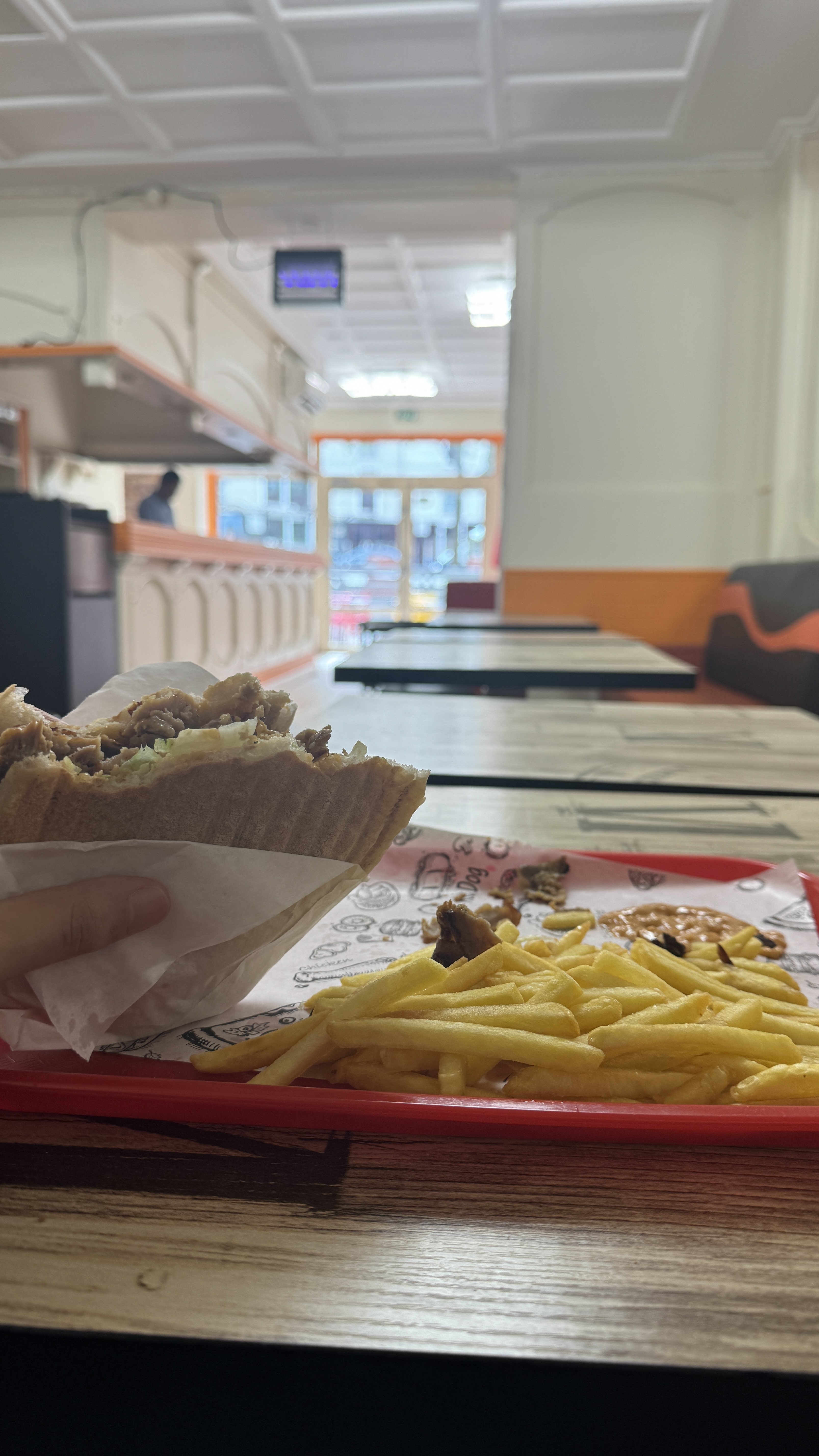 Service très très long..hygiène des tables bof et des toilettes à revoir completemznt..et on fait l impasse sur la déco sinon tarifs correct. Kebab correct